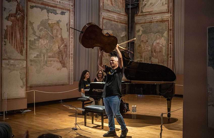 As with a ‘roman-fleuve’, with this kind of concert one immediately understands that nothing can be taken for granted: after all, if ‘caution’ is banished, risk and adventure are the very essence of projects like “Celloland”, which not only challenge an instrument with a venerable history on the roughest of terrains, but also drag it into the fray of burning current events, in the name of such inalienable rights as peace and global disarmament. Thus, from sacred improvisations launched amid glorious mosaics, we will come to the progressive-rock of the legendary, celebrated band PFM: fifty years after its release, their first album, Storia di un minuto, combining powerful rock with classical elements, will be launched into orbit, propelled by a hundred cellos.