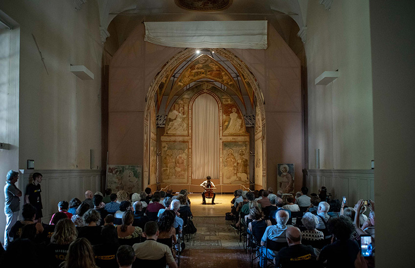 Six years on from the first time, the Byzantine city once again turns into “Celloland”: the project that Giovanni Sollima and Enrico Melozzi conceived in the occupied Teatro Valle in Rome ten years ago seems never to have taken leave from the streets of Ravenna, being so deeply ingrained in the heart and soul of the Festival. Spanning a long weekend, and governed by some of the deepest and most evocative sounds that man has been able to create through the ingenious manipulation of wood, strings and geometry, the project will once again revolve around the monumental 100 cellos orchestra. After making it big the world over, from Tokyo to Dubai, the musicians will cruise the city, from theatres and palaces to cloisters and ancient basilicas, riding the rolling sound waves that only a battalion of curvy, shiny instruments can produce, seducing the soul.