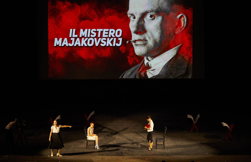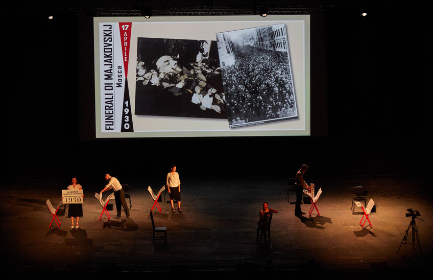 “Good luck to those who remain.” This is the sardonic close of Vladimir Majakovskij’s suicide note, addressed “to everyone”: the poet shot himself through the heart on April 14, 1930. His acronym, BPM, also stands for ‘beats per minute’, the pulse, the heartbeat of a man who is now reduced to “the appendage of a heart”; it is the rhythm of a poet who is “nothing but heart, roaring everywhere”. Serena Vitale, one of the most important Italian Slavists, has investigated the complex mystery of Majakovsky’s death. Her research has inspired Menoventi to create a dramaturgy on the last heartbeats of the great poet of the Revolution, and of his extraordinary generation of young artists, who embraced the October Revolution and radically transformed the traditional conception of their respective disciplines, then were crushed by the authoritarian drift of their utopia, and often put a violent end to their art or life. Following in the footsteps of Mejerchol’d and Majakovsky, Menoventi narrate their story blending Realism with the fantastic characters generated through the use of metaphor, a procedure the poet often followed. Original materials and documents thus meet the Phosphorescent Woman from Majakovsky’s last play, who will guide the audience in this maze-like, whimsical artistic period, seduced by the myths of reincarnation and time travel.