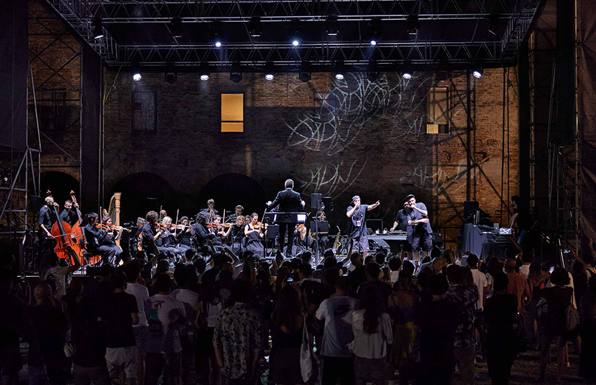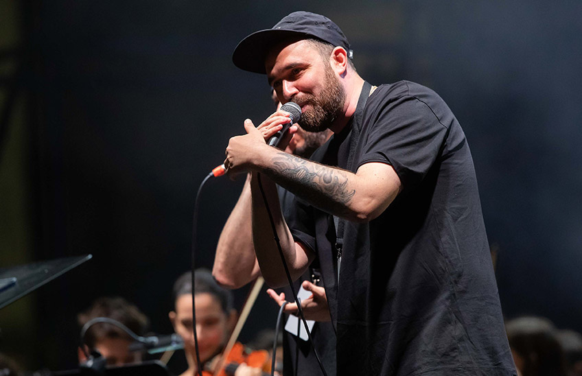Claver Gold’s hip hop is a sophisticated mix of rhymes, a clever balance of passion, improvisation (in the best tradition of freestyle) and compositional rigour: live narration, urban poetics that moves from intimate, private emotions to encompass the feelings of a whole generation. After making a name for himself on the Italian rap scene with “street” rap and many indie albums, he joined forces with his friend and colleague Murubutu to tackle Dante in a joint album, Infernum.This work won the interest of the general public, captured by Claver Gold’s poetic juxtapositions where everyday life, the primary source of inspiration for hip hoppers, is combined with the darkest and tensest Nordic tales, now tinged by the full colours and unpredictable orchestral mix of classic strings, brass and woodwinds.