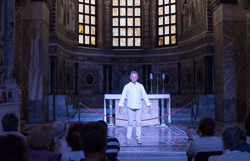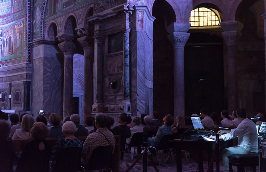 Based on improvisation, SALMI (Psalms) opens with the Gregorian chant Liber generationis, with the songs Lectio Sancti Evangelii, O quando in cruce and the offertory hymn Angelus Domini, which are developed, mixed and reconstructed together with complex sound events, following a constant flow. The melodic-spectral (and rhythmic) analysis of melodies and “tones of interpretation” has led to the creation of specific signal development algorithms and numerical synthesis. These factors are combined with “sound samples” (partly collected in churches and places of worship), modular electronic systems (both analogue and digital) and sensors. Process algorithms are governed by digital controllers via MIDI protocol in a “modal-timbre” dialogue between archaic vocal forms and current structural-sound concepts.