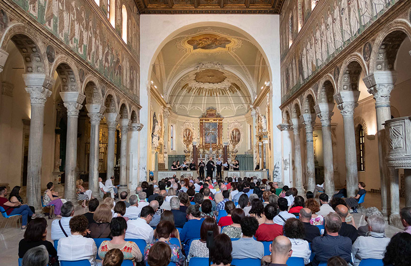 The spiritual achievement of those who have found faith does not work as an anchor that keeps the ship safe; on the contrary, the reaching of a goal that gives meaning and hope to their journeys pushes them back towards the vast and open sea. This broad horizon, translated into the dimension of catholicity, will be expressed in the variegated calendar of mass celebrations of In Templo Domini. The programme features four composers, separated in time and space, who expressed the same faith in very different forms, all equally intense and dense with spirituality. This musical and spiritual journey will take us to familiar places as well as lead us to new seas and horizons.