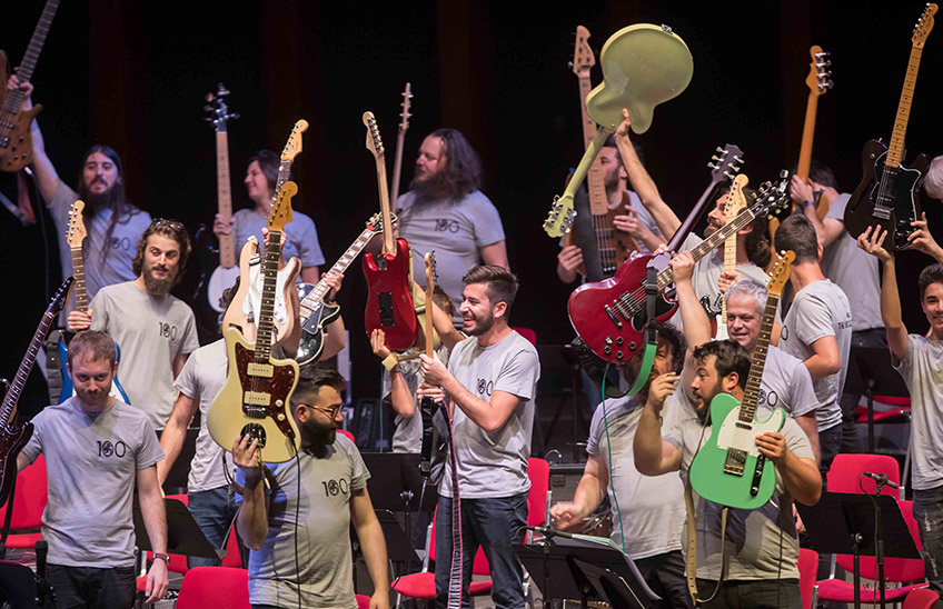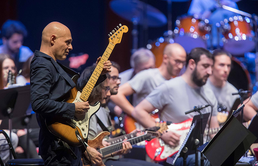 La dialettica tra musica colta e musica “del popolo”, più correntemente popular – se così la si può chiamare – è da sempre terreno fertile per crescite rigogliose. Nell’ultimo secolo, l’egemonia culturale degli Stati Uniti nel mondo occidentale è passata anche attraverso il rock, quindi attraverso la chitarra elettrica. E i compositori non sono certo stati a guardare, dedicando a questo strumento-icona pagine straordinarie. Come quelle scelte per il grande concerto che chiude il percorso dedicato alle “cento chitarre elettriche”. Ancora una volta sull’argine del fiume Lamone, si dispiega un grandioso affresco sonoro. Un’occasione unica e irripetibile, una vera e propria festa musicale, uno spettacolo maestoso e roboante, capace di trascinare il pubblico fin dentro le viscere del suono.