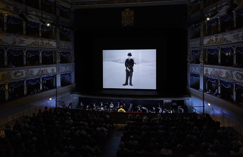Il genio di Chaplin si è espresso anche nella musica. Senza saper comporre davvero e suonando a orecchio, ha sempre scelto e creato le proprie colonne sonore, anche quelle da eseguire dal vivo per i film muti. E se la sua prima composizione integrale è per “Luci della città” del 1931, già con La corsa dell’oro di sei anni prima, “scrive” quella traccia fondamentale per la visione del capolavoro, che ancora una volta rilegge la tragedia in modo da far sorridere il pubblico. Il compositore Timothy Brock, restauratore del corpus musicale del grande regista, ha ricostruito con maestria la partitura originale, basandosi su registrazioni inedite eseguite al piano dallo stesso Chaplin. L’esecuzione affidata all’orchestra sinfonica, diretta dallo stesso Brock, ne esalta poi ogni dettaglio.