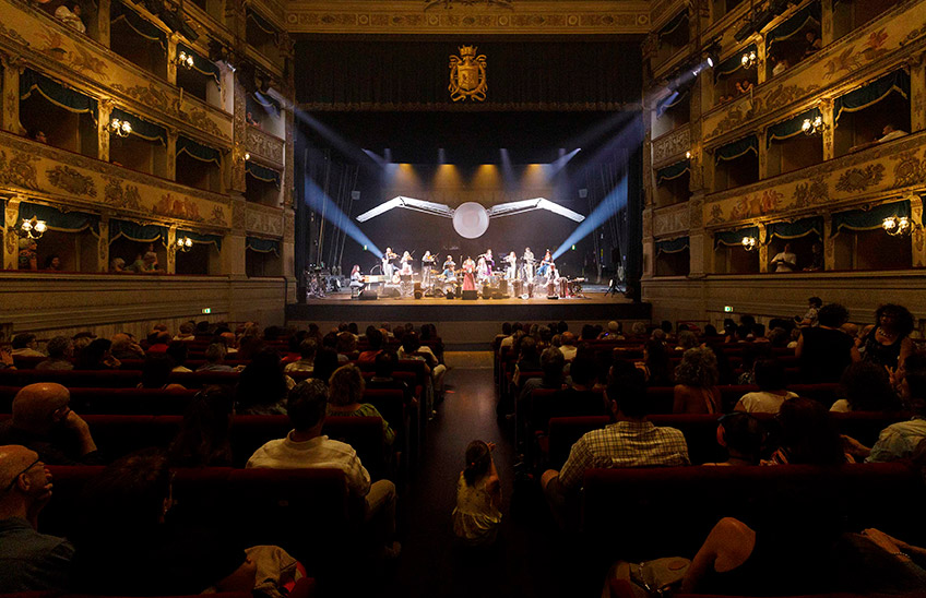 Come suggerisce il titolo, è il concetto di “circolarità” a ispirare la nuova produzione originale della Classica Orchestra Afrobeat, l’istrionico ensemble da camera diretto da Marco Zanotti che per questo debutto è “affiancato” dalle opere della Mutoid Waste Company, il collettivo nato in Inghilterra negli anni Ottanta e da tempo stabilitosi a Mutonia, presso Santarcangelo di Romagna. Così, con un organico in bilico tra barocco e contemporaneo e proponendo scenari di forte impatto sonoro e visivo, si tenta una rappresentazione del nostro futuro prossimo, quando l’umanità volgerà lo sguardo finalmente in alto, verso una vita più dignitosa e sostenibile. Innescando una profonda riflessione sulla convivenza in un ambiente in cui tempo e vita non sono linee rette, bensì Circles a spirale infinita.