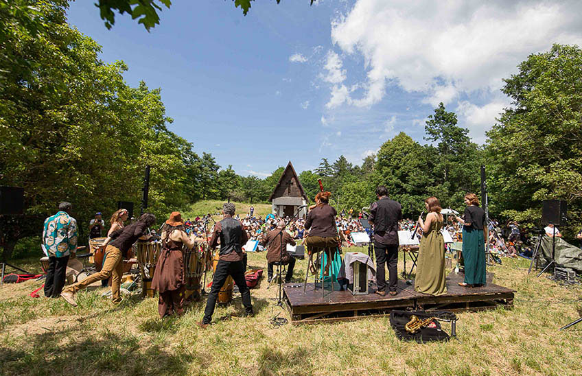 Il cammino ci porterà al cuore delle Foreste Casentinesi, il pianoro della Lama, al confine con la Riserva Naturale Integrale di Sasso Fratino. La Riserva è un luogo incantato, dalla morfologia aspra, segnata da ripide pendenze e da affioramenti rocciosi. Un luogo per secoli fuori dai consueti percorsi, poco battuto dall’uomo (talvolta vietato a esso) e per questo rimasto nella condizione più prossima alla massima “naturalità”, con un’eccezionale ricchezza di specie arboree che in piena libertà nascono, crescono, si adattano, nell’inevitabile ciclicità della vita. A unirsi al canto del bosco sarà la Classica Orchestra Afrobeat, un ensemble che, dedicandosi alla contemplazione catartica delle voci della natura, crea un proprio habitat immaginifico alla ricerca di una primitiva armonia tra l’umano e il divino.