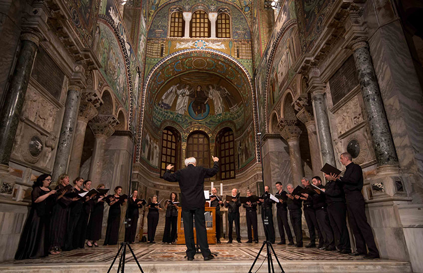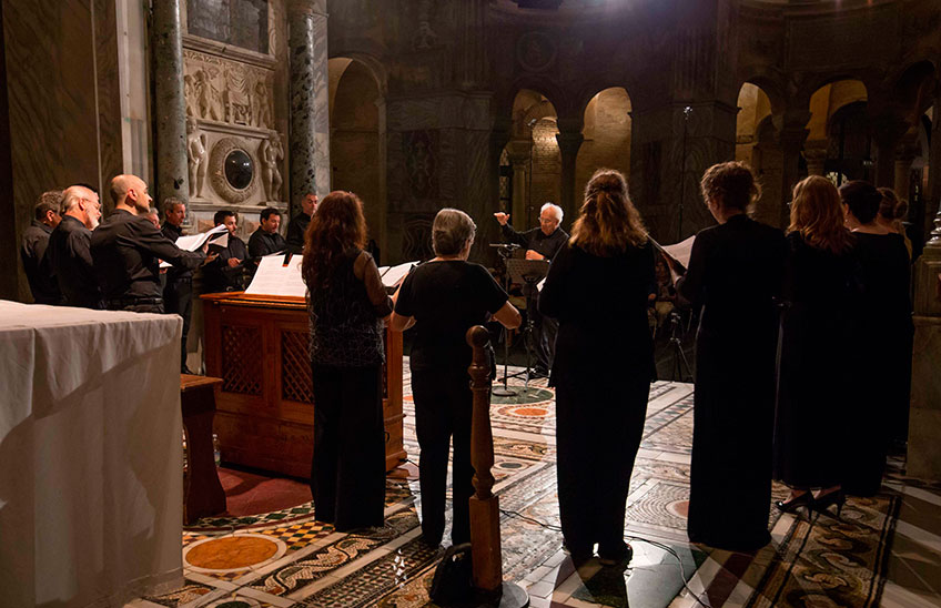 Fu per coinvolgere pienamente i fedeli nel gesto liturgico che con la Riforma luterana (di cui si celebrano i cinquecento anni) si promosse la composizione di corali, non in latino ma nelle lingue d’uso, tali da poter essere cantati da tutti i partecipanti al rito. Ma se, proprio per questo, i primi corali sono semplici melodie, all’epoca di Bach le stesse melodie saranno rivestite di armonie elaboratissime. Come testimonia il più celebre corale di Lutero, Ein feste Burg: intonato nel Cinquecento da Klug e Walter e nel Settecento da Bach e Telemann. Sul versante cattolico, anche la Controriforma si gioca su questioni musicali: toccherà a Palestrina salvare la comprensibilità del testo con nuovi procedimenti polifonici. Come nella Missa L’Homme armé, parafrasi di una melodia popolare molto nota e da altri già più volte impiegata in ambito sacro.
