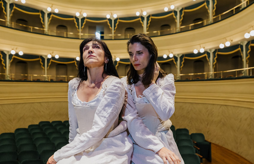 Due regine, due donne, due religioni, due temperamenti opposti, due segni zodiacali in contrasto, due visioni della politica, della vita, dell’amore, due destini: due attrici e registe interpretano le regine Mary Stuart ed Elizabeth Tudor, cugine, incatenate l’una all’altra in un eterno duello. La vita dell’una significa la morte dell’altra: pur di vincere si ricorre alla guerra e all’intrigo, ogni sussulto di pietà è sacrificato, ogni possibile misericordia è bandita.