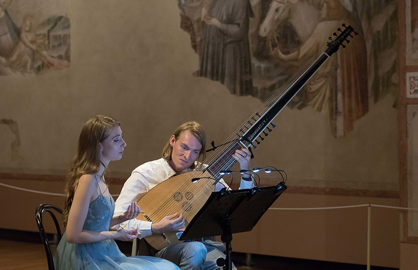 Celebrato ancora oggi come pioniere della monodia, Giulio Caccini si ispirava alla tragedia greca quando, alla fine del Cinquecento, nell’ambito della Camerata Fiorentina, promosse un nuovo stile vocale basato su un’unica linea melodica accompagnata da una linea di basso armonizzata da un musicista e ponendo le basi per la nascita del teatro musicale. Caccini condusse questo stile alla maturità nelle sue Nuove Musiche, una raccolta pubblicata a Firenze nel 1602, contenente anche interessanti istruzioni sulla prassi esecutiva del tempo ed esempi che illustrano come realizzare l’ornamentazione in vari modi in funzione dell’impatto emotivo che la voce avrebbe dovuto suscitare.