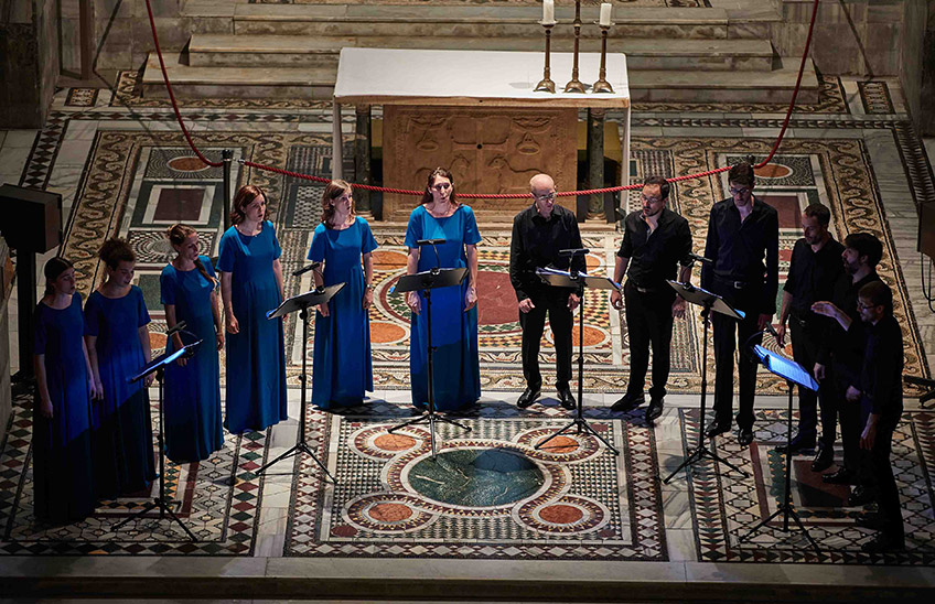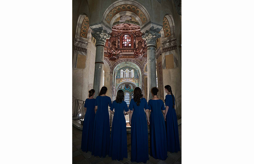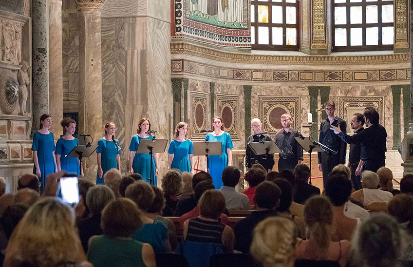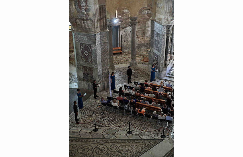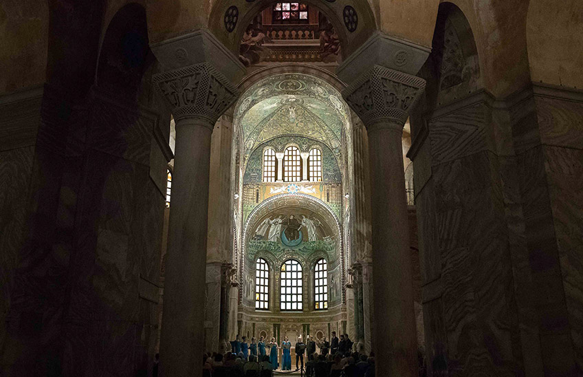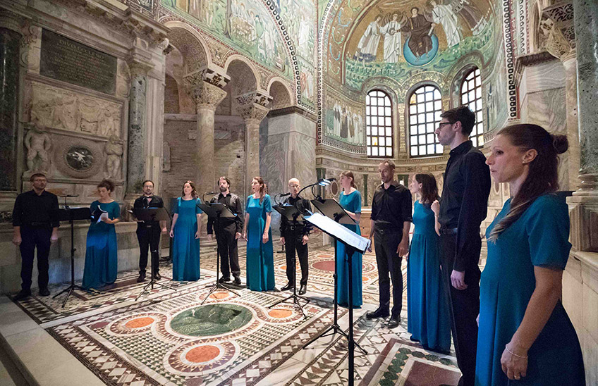 È un percorso tematico che attraversa l’universo della musica sacra a cappella, coinvolgendo il pubblico in un viaggio nel tempo, alla scoperta di epoche e di stili diversi. Un modo per mettere a confronto gli stessi temi posti in musica e affrontati da autori lontani tra loro. E per provare a capire come compositori diversi abbiano “riflesso” un determinato tema nel loro peculiare stile musicale. In una esecuzione che vuole esaltare la straordinaria acustica della Basilica di San Vitale, sfruttandone gli spazi, il presbiterio e il matroneo, in un gioco di “echi” tra le varie sezioni del coro.