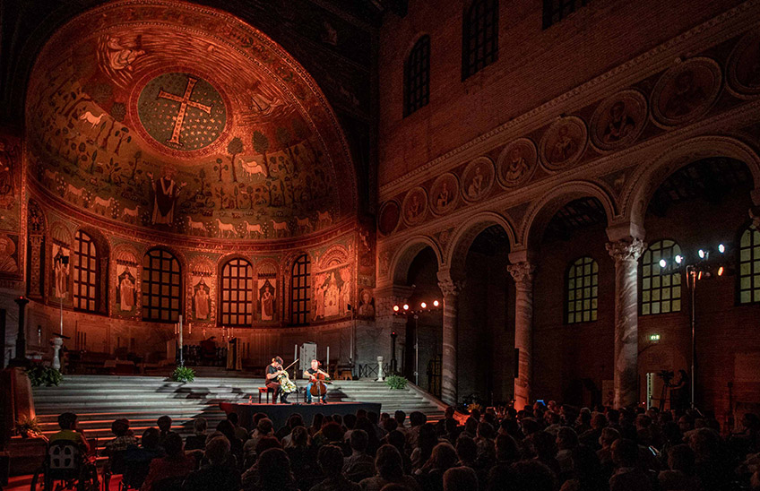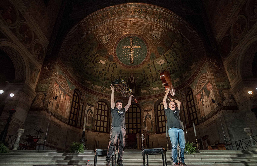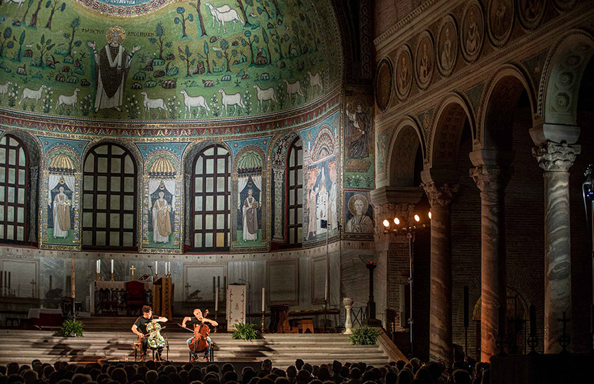 A sei anni dalla prima volta, la città bizantina torna a trasformarsi in “Cellolandia”: il progetto di Giovanni Sollima ed Enrico Melozzi – nato giusto 10 anni fa in seno al Teatro Valle occupato – sembra in realtà non aver mai preso commiato dalle mura di Ravenna, tanto è entrato nelle viscere del Festival. Articolato in un lungo fine settimana, dominato da suoni tra i più profondi e suggestivi che l’uomo abbia saputo ricavare manipolando con ingegno legni, corde e geometrie, si concentra ancora una volta sulla monumentale orchestra dei 100Cellos. Che, dopo aver spopolato a tutte le latitudini, da Tokyo a Dubai, attraverserà la città fra teatri, palazzi, chiostri e basiliche secolari cavalcando le impetuose onde sonore che solo un battaglione di strumenti sinuosi e lucenti come tutto ciò che seduce l’anima può produrre.