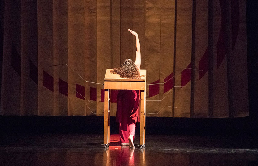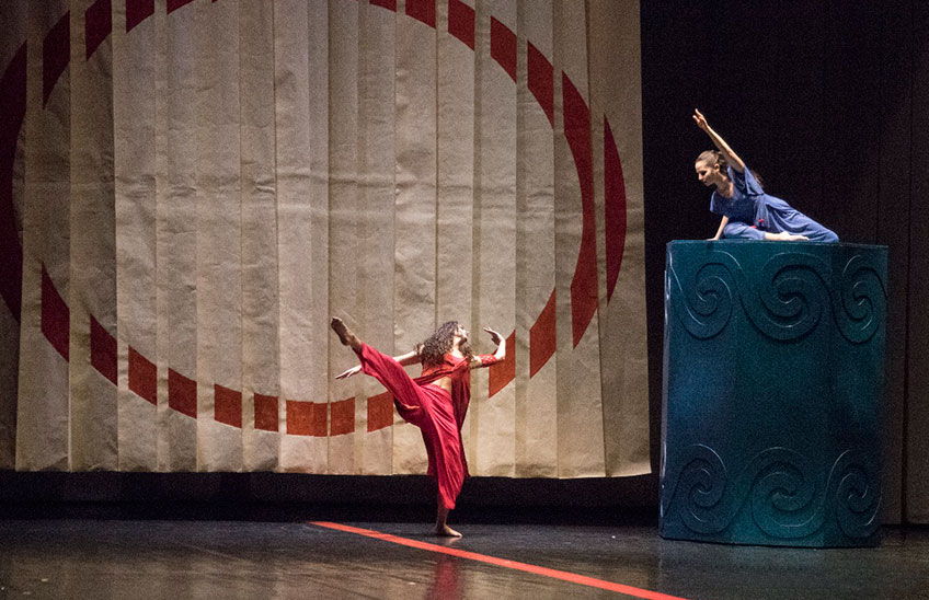 La scelta di inserire Erodiade – Fame di Vento (1993) di Julie Ann Anzilotti e della sua Compagnia XE nell’ambito del Progetto RIC.CI nasce dalla forza espressiva del poema incompiuto Hérodiade di Stéphane Mallarmé. La figura di Erodiade, ovvero Salomè, è vista nella sua immensa solitudine, ma portata, dopo la decollazione del Battista, verso la catarsi. La scenografia del famoso artista visivo Alighiero Boetti è un segno distintivo di un’epoca votata alle collaborazioni tra creatori di varie discipline: porta con sé una raffinata eleganza, e dona all’insieme una speciale autorevolezza. La coreografia è sorretta dalla musicalità della parola, affidata alla voce di Gabriella Bartolomei, e al trasporto dell’incantevole partitura, soprattutto di Paul Hindemith.