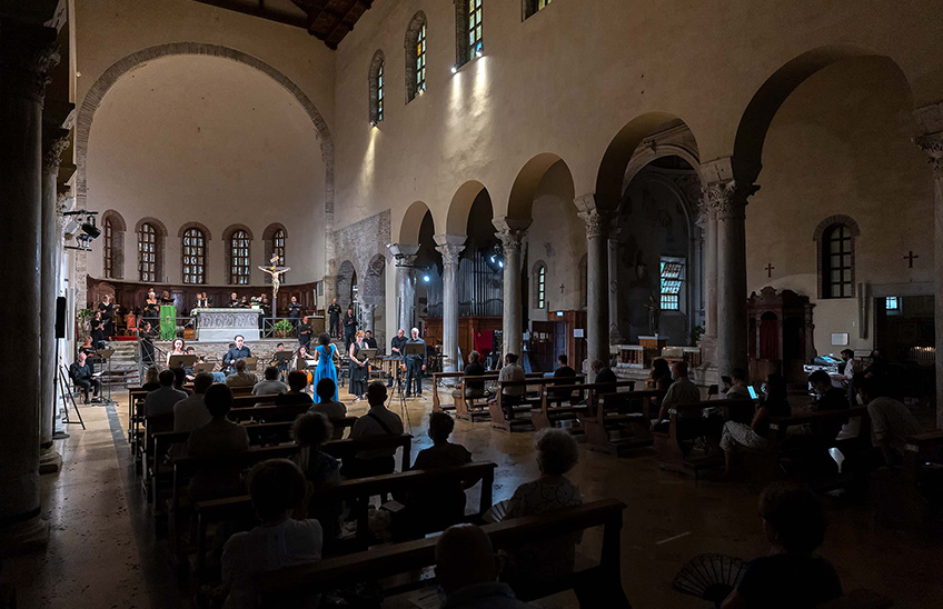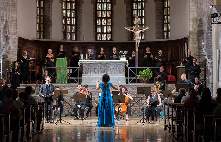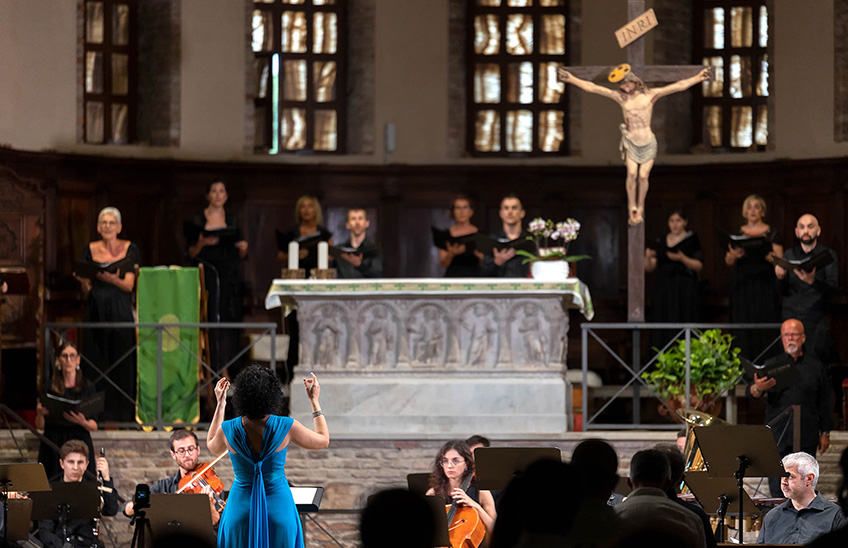 Un oratorio costruito su misura per il coro cesenate Ecce Novum, in cui i versi degli ultimi sette canti del Purgatoriosi intrecciano, nel disegno di Francesco Di Giorgio, con la Vulgata, l’Eneide, La terra desolatadi T.S. Eliot, poi con versi di Ungaretti e Montale, e con reminiscenze da romanzi e racconti di Conrad, Hemingway, Celati, Bufalino, Guimarães Rosa… in un libretto che racconta il momento in cui Dante, abbandonato da Virgilio, incontra finalmente Beatrice, che non gli risparmia i rimproveri per gli errori fatti e lo invita a immergersi nei fiumi Lete ed Eunoè. Il contemporaneo pervade l’antico e viceversa, così come nella scrittura musicale del giovane compositore Stefano Dalfovo, che alterna nello spazio sonoro canto gregoriano e contrappunto, assecondando il plurilinguismo del testo con oscillazioni tra modalità, tonalità e atonalità.
