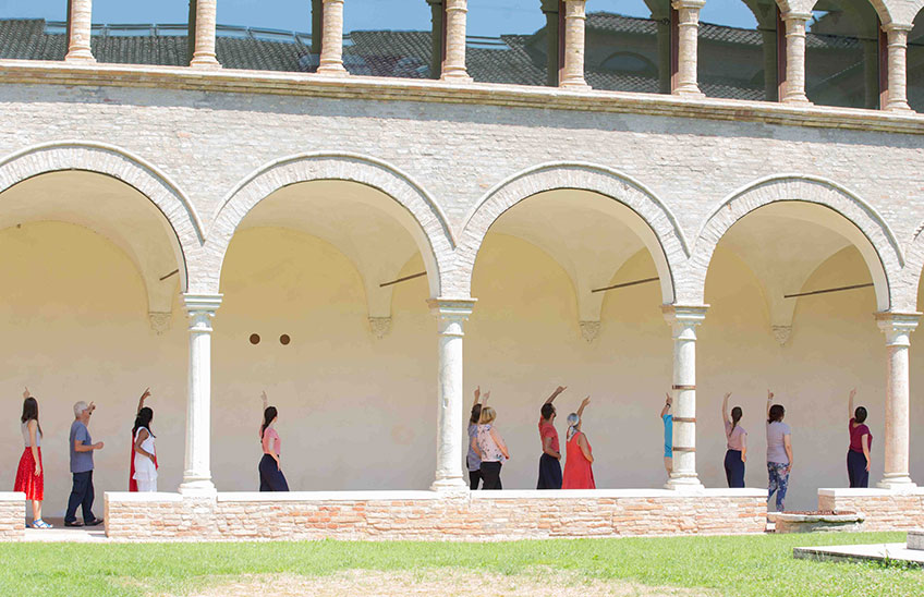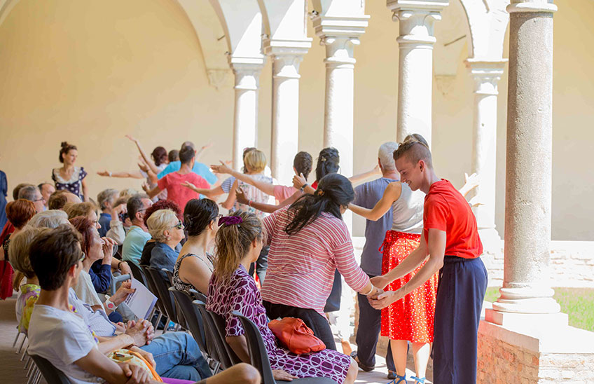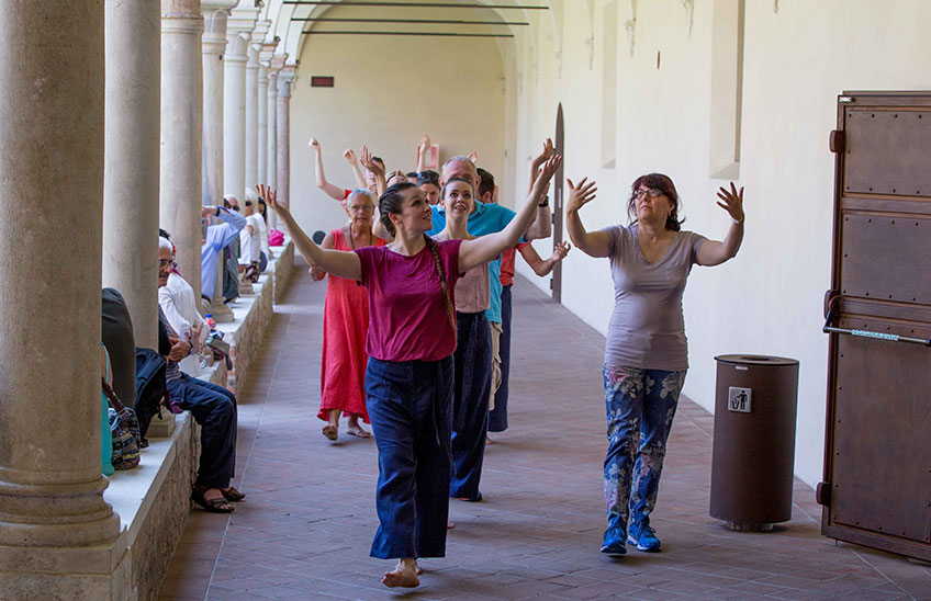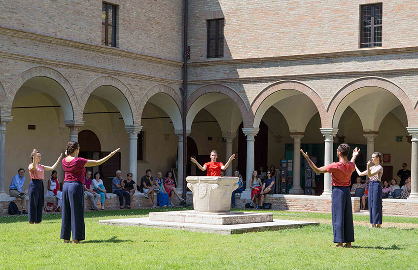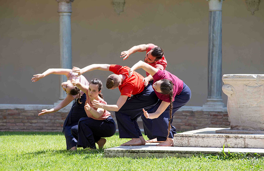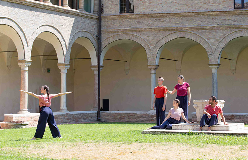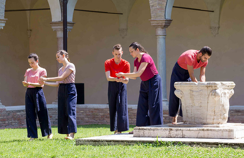 Il giardino delle delizie è un rito coreografico che celebra il Paradiso terrestre, vetta della montagna del Purgatorio. Meravigliosa meta descritta dal poeta Dante Alighieri come un rigoglioso giardino creato da Dio e sede per l’umanità, il Paradiso terrestre si specchia nell’architettura squadrata del Chiostro, abitato da un brulichio di sei corpi ispirato alla complessità pittorica di Hieronymus Bosch. Ad unire i sei danzatori una trama di movimenti capace di unirli nel costante desiderio di muoversi e la tensione verso la purificazione e l’ascesa.