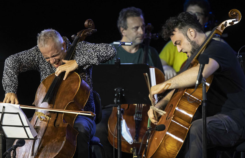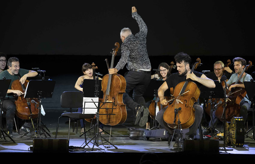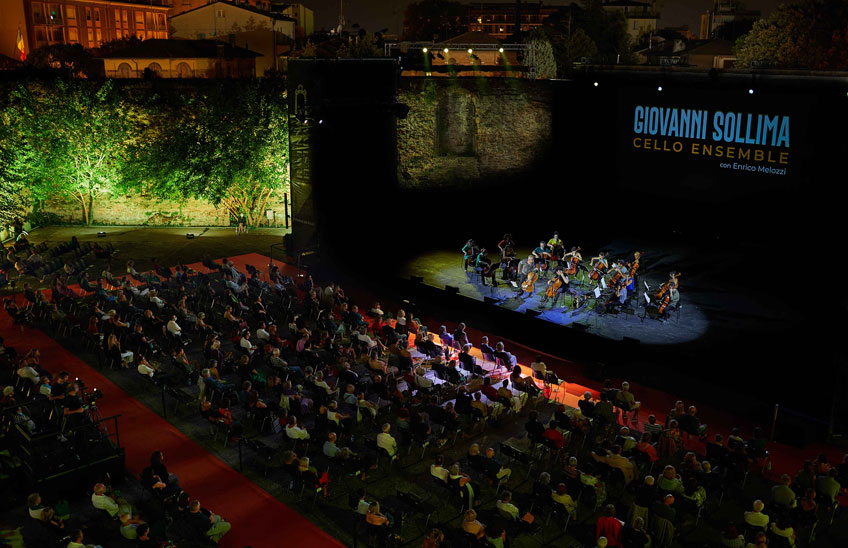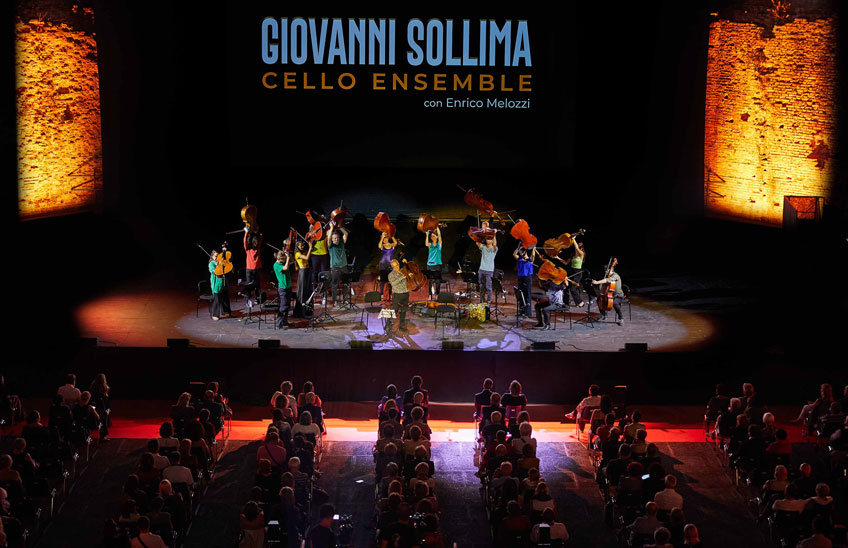A quattro anni dalla prima entusiasmante marea di corde, armonie e suggestioni che invase la città, tornano i violoncelli di Giovanni Sollima. Non sono cento – questo proprio non si può –, ma il vigore e la tenacia, la passione irresistibile e l’impertinenza interpretativa sono le stesse di allora. E ancora una volta questo strumento che diresti serafico e appartato, altezzoso e riflessivo, nelle mani e sotto la direzione del musicista siciliano diviene un grimaldello capace di aprire ogni porta ed entrare in comunicazione con il pubblico più ampio e diverso. Perché se la voce del singolo violoncello, così affine per timbro e tessitura alla voce umana, arriva sinuosa e quasi materna ad abbracciare l’ascoltatore, un vero e proprio Ensemble di violoncelli, che moltiplicandosi si specchiano l’uno negli altri, può catturarne l’emozione, travolgendolo. Soprattutto se alla guida di tutto siede Sollima: virtuoso di fama indiscutibile e compositore eseguito in tutto il mondo – anni fa la stampa statunitense non esitò a definirlo “the Jimi Hendrix of the Cello”, per le straordinarie qualità tecniche e interpretative, certo, ma anche e soprattutto per la capacità tutta sua di instaurare legami tra gli stili e gli ambiti culturali più diversi, ignorando ogni barriera di genere. Una forza dirompente, la sua, che attinge linfa vitale dalla tradizione classica, dal barocco alle avanguardie novecentesche, dai territori del rock, del jazz, come dal repertorio popolare della tradizione della sua terra. Parlando, appunto, a tutti.