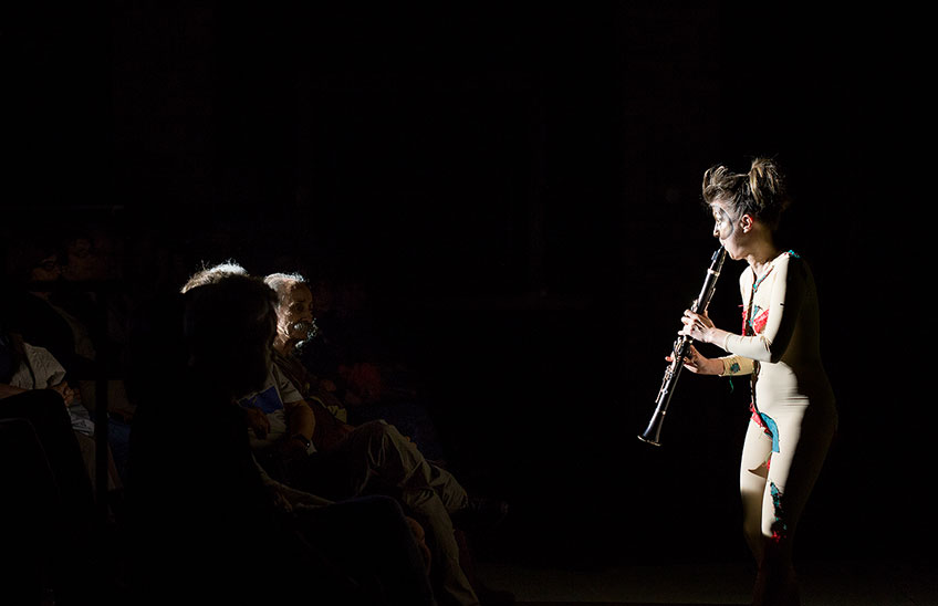 Della maschera della commedia dell’arte non rimane che l’essenza nascosta, lo spirito più profondo ed astratto: l’Harlekin di Stockhausen non parla, il suo io si riversa nel suono del clarinetto e nel gesto, nella musica e nel linguaggio del corpo. L’interprete chiamato a dargli vita intreccia e fonde codici diversi – suono, mimo, danza – in un flusso di senso unico e originale lungo il quale si snodano le metamorfosi del protagonista, da “messaggero di sogno” a “buffone burlone” fino a “esaltato spirito rotante”. Un monologo sul filo dell’infallibile “formula” compositiva stockhausiana, che per Roberta Gottardi è come una parte di sé: vi ha lavorato a stretto contatto con l’autore, l’ha ripercorsa con tale intensità da poterne insegnare i segreti, ma anche da riuscire a riproporla ogni volta con lo stupore della prima volta.