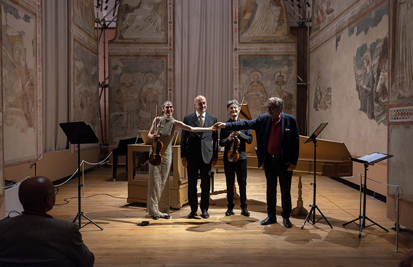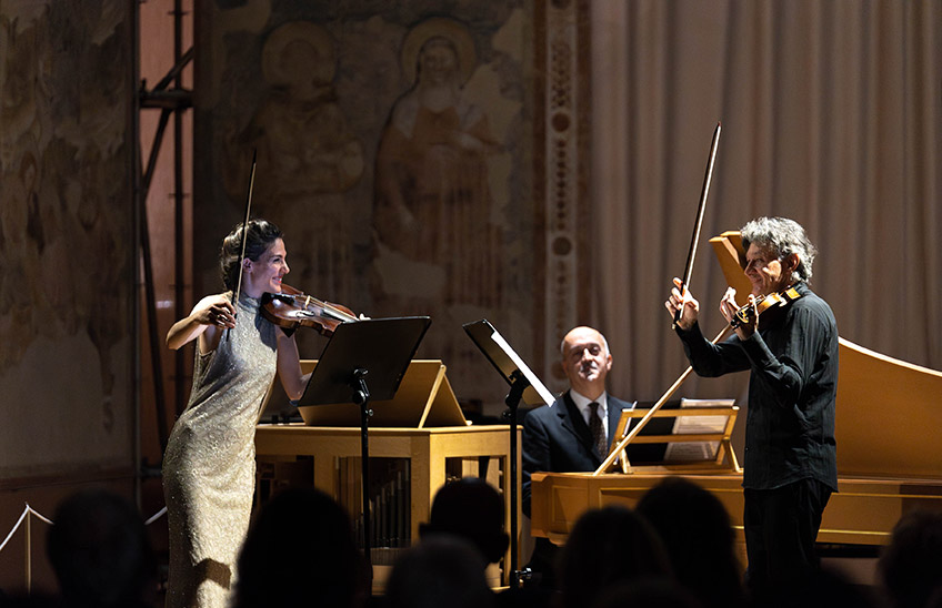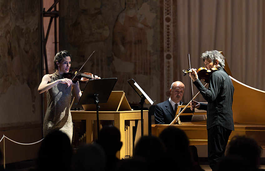 «Se una notte d’inverno… un violinista-musicologo dice che oltre a quelli di Bartók oggi non ci sono abbastanza duetti, può accadere che un compositore si metta a scrivere fino alle prime luci dell’alba… e poi ne scriva ancora nei momenti di riposo, in città e in alberghi diversi, fra una prova e l’altra, viaggiando, pensando a qualcuno, cercando un regalo… È quello che è capitato a me, e di ciò sono grato al violinista notturno che ha infatti dato il nome a uno di questi Duetti». Cita Calvino, Berio, per raccontare come i suoi duetti per violino nascano in nome dell’amicizia. E tra i dedicatari appare Marcello Panni, che a distanza di tanti anni ricambia il dono, con altri duetti, eseguiti qui in prima assoluta, e affiancandoli a quelli di Biber, maestro della “scordatura”, e inarrivabile esempio dell’origine barocca di questo repertorio.