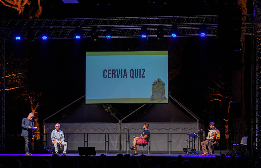 C’è un adagio, attribuito a Eduardo De Filippo, che recita: la comicità è l’arte di nascondere l’intenzione di far ridere. Maestro di questa sprezzatura è, da più di trent’anni, Gene Gnocchi, che ha attraversato da protagonista la storia della televisione comica italiana. E anche questo spettacolo non fa eccezione, per la sua peculiarità: come si fa a far ridere con un quiz su Cervia? È la sfida che Gene ha deciso di prendere di petto, presentando e conducendo questo gioco comico che, come dice lui stesso, «consente di divertirsi e allo stesso tempo di imparare qualcosa». Due i concorrenti: il sindaco di Cervia e il suo sfidante, scelto fra il pubblico. Tanti i temi, che spaziano dalle tradizioni cervesi del sale alle leggende della riviera romagnola, dalla storia di Milano Marittima a quella del ballo liscio.