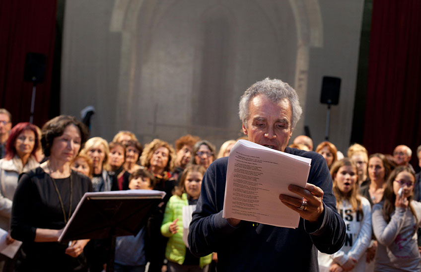 Marco Martinelli e Ermanna Montanari raccolgono la sfida di trasformare in teatro il capolavoro che ha dato origine alla lingua e alla letteratura italiana. La parola “teatron”, “visione”, la ritroviamo nella definizione che Dante stesso dà della sua opera, “mirabile visione”, mirabile teatro quindi, capace di accogliere nel suo campo visivo l’umanità nelle sue molteplici esperienze. La chiave con cui le Albe tradurranno il “trasumanar” dantesco è pensare l’opera nei termini della sacra rappresentazione medievale e del teatro rivoluzionario di massa di Majakovskij: tutta la città è un palcoscenico, tutti i cittadini sono chiamati a partecipare, a “farsi luogo”, a farsi comunità. Ezra Pound definisce Dante l’Everyman: è l’umanità intera che fa quel viaggio, difficile ma salvifico.