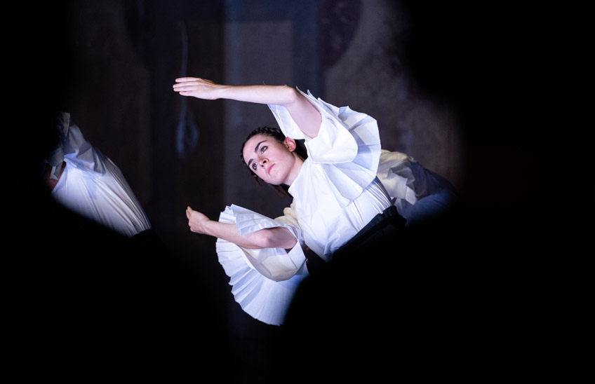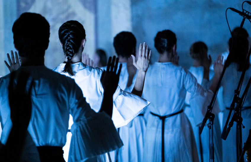 Bulgaria, Ucraina e Russia sono le terre dove soffia il canto Znamenny (знамёна, segni), che sutura l’Europa a Est, dal Mar Nero su sino al Mar Baltico. È un canto lontano dalla pompa lussureggiante della liturgia ortodossa, un canto dall’equilibrio essenziale, all’apparenza modesto, che sebbene unisca la storia profonda dei popoli slavi, ora risuona sopra una guerra. E la danza che su di esso è costruita viene accolta nell’antica capitale bizantina, in San Vitale, paradigma ritmico e storico cui convergere: danza e architettura, Oriente e Occidente, passato e presente saranno giudicati dagli archi euritmici di quell’opera umana, fatta per attraversare il tempo terreno. E dove la danza entra con discrezione e riguardo, pur affermando la propria attualità nel confronto con la cronaca violenta di questo tempo.
