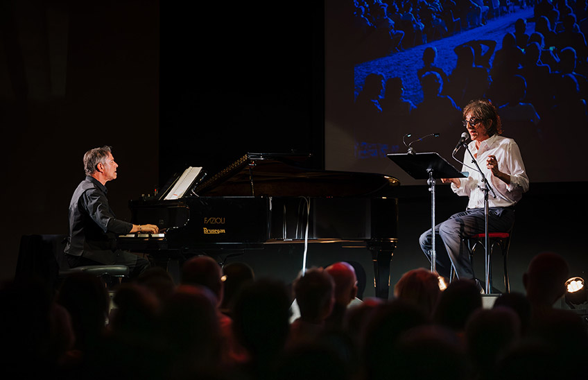 Che rapporto ci sia tra gli atlanti di Kublai Kan e le città con nomi femminili raccontate da Marco Polo non lo sapremo mai – del resto, il filo del racconto si dipana proprio nell’impossibilità di conciliare le ragioni segrete della voce e quelle ignote dell’ascolto. E quello che di queste città ascoltiamo ci riporta sempre all’essenza labirintica di ogni luogo e all’ambiguità di ogni racconto. Così, tra le “città invisibili” ci sono quelle in cui non si capisce se un oggetto sia una cosa o un segno, quelle in cui l’entusiasmo per il nuovo è minacciato da pericolanti cumuli di spazzatura della vita passata, quelle che forse sono incompiute o forse già in rovina. A Sergio Rubini il compito di dipanare questo dialogo, scegliendo il suo percorso attraverso le città di Calvino, sostenuto dagli echi jazz del pianoforte di Michele Fazio.