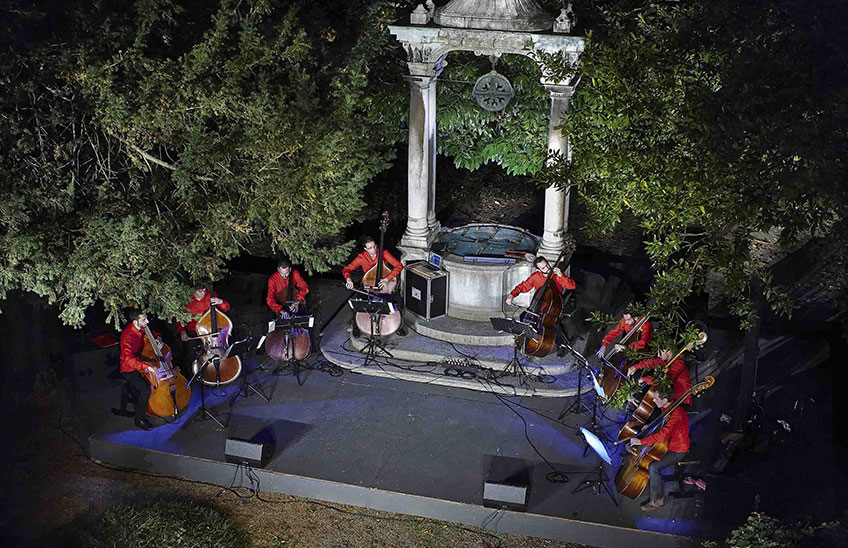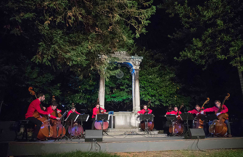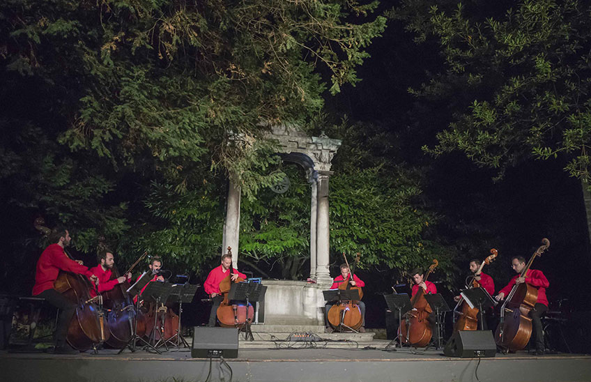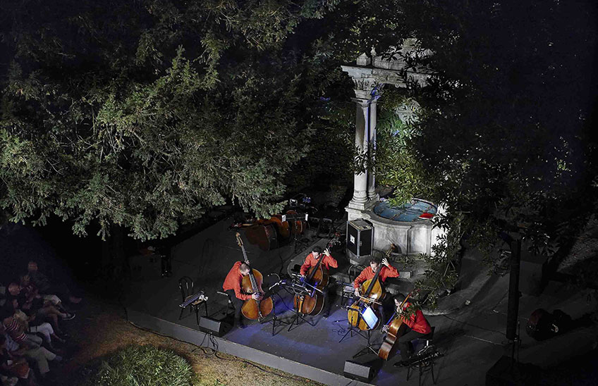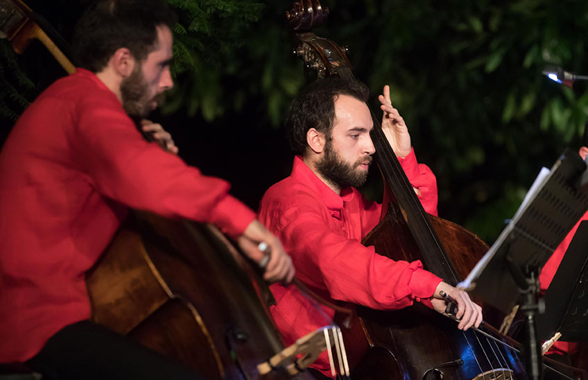 Smentendo il ruolo “gregario” giocato nelle file dell’orchestra classica, il contrabbasso sorprende l’ascoltatore svelando qui tutte le proprie inaudite risorse sonore. In questo ensemble, nato dall’incontro di Daniele Roccato con Stefano Scodanibbio, l’indagine timbrica ed espressiva si lega alla collaborazione con autori contemporanei. Come Sofija Gubajdulina, con i suoi Studi in cui l’esplorazione di articolazioni e tecniche strumentali diviene linguaggio, o con Quaternion costruito su piani tonali paralleli. E come Filippo Perocco e Fabio Cifariello Ciardi: del primo, miniature realizzate a partire da ricordi di canti popolari “gridati” contro la Grande guerra, del secondo, una lotta tra voce e strumenti costruita su ritmi e inflessioni della voce di Martin Luther King nel suo rivoluzionario I have a dream.