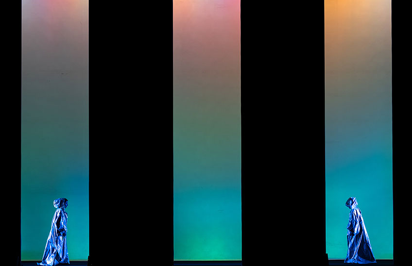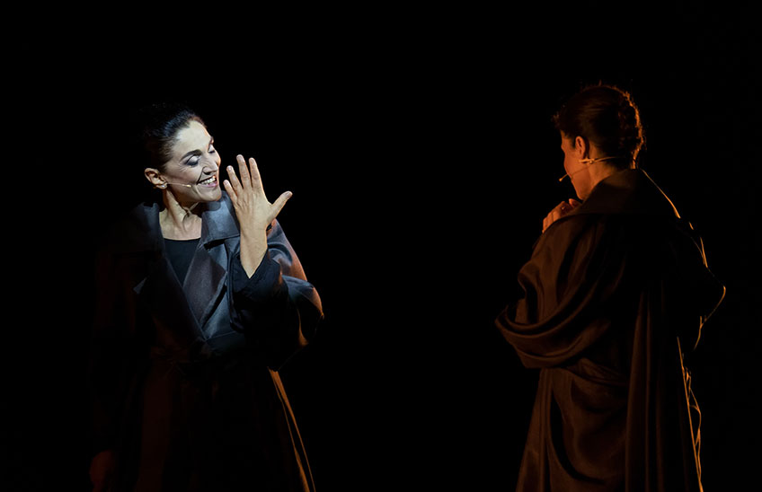 Nel buio, tra quinte e fondali si aprono e chiudono fessure, varchi, spiragli, squarci… La luce appare, scompare, si trasforma: apparizioni diverse si rivelano nella voce di due figure bianche, specchio l’una dell’altra, custodi, fantasmi, anime. Due attrici, che più volte hanno intrecciato i loro percorsi artistici, tornano a collaborare inoltrandosi in quel grandioso teatro che è la Commediadantesca, in quella mappa di luci disegnata dal Poeta per orientarci nel buio generato dalla discordia e dall’ignoranza, dalla prepotenza e dall’avidità: luci grandi e piccole, con le quali trovare un varco nella “selva oscura”. Luci che hanno ispirato Dante e che da lui hanno tratto linfa: cercandole ci invitano ad ascoltare lo spirito di speranza che alberga in ognuno, lo spirito che crea e non distrugge, che abbraccia e mai respinge.