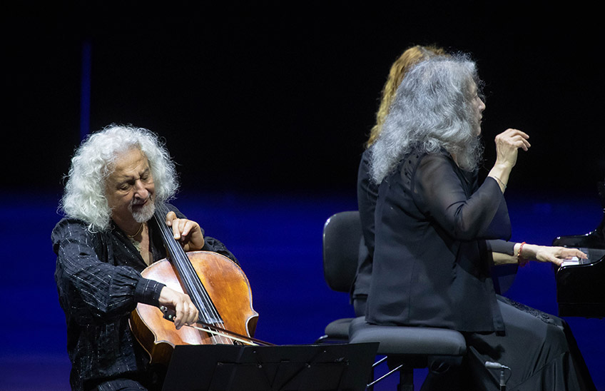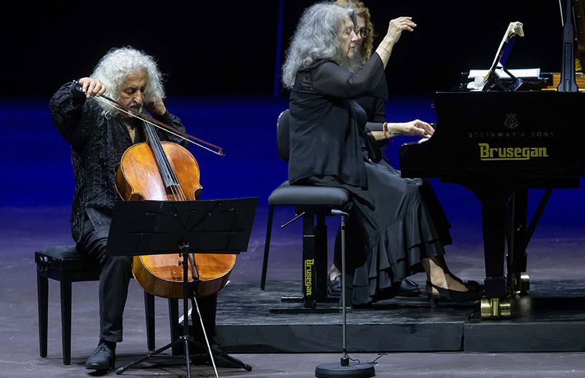Il sodalizio fra Mischa Maisky e Martha Argerich ha toccato i 45 anni. Un duo formidabile per interazione tecnica ed espressiva, cementato da un’amicizia di ferro e da un’intesa epidermica, con immediate conseguenze musicali. «Suonare con lui è la cosa più naturale del mondo», ha confessato la pianista argentina, che qui affronta tre Sonate per violoncello e pianoforte distribuite su altrettanti secoli: c’è il Beethoven tardo settecentesco della Sonata n. 2, pionieristico esempio di un genere che non aveva ancora antecedenti né in Haydn né in Mozart; c’è poi uno dei pochi esemplari cameristici di Chopin, raramente uscito dal perimetro del pianoforte; e infine la Sonata di Debussy, un altro pezzo unico, dall’atmosfera notturna, quasi lunare, già novecentesca, con i colori armonici che prevalgono sul disegno.