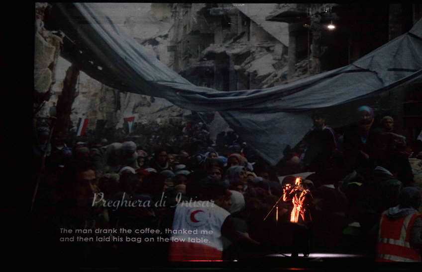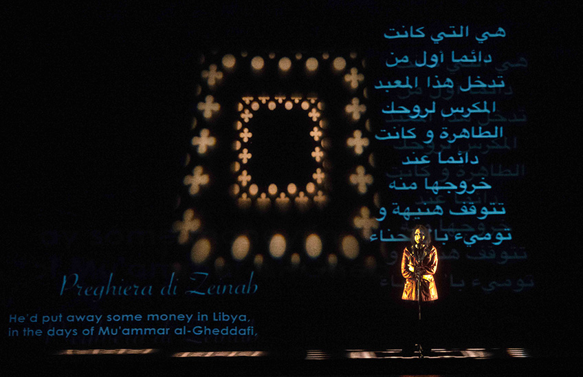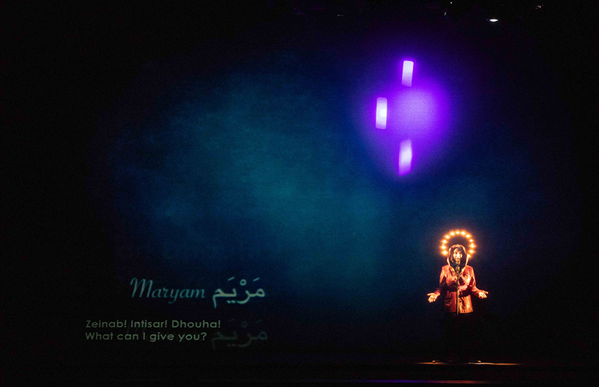 Zeinab, Intisar, Douha: tre donne palestinesi entrano nella Basilica dell’Annunciazione a Nazareth e si rivolgono a Maria, la Madre di Gesù, chiamata Maryam nel Corano, gridano la loro preghiera, condividono con lei il dolore per la morte dei figli e dei fratelli dovuta all’ingiustizia del mondo. Il Teatro delle Albe torna a collaborare con Luca Doninelli, scrittore finalista al Premio Campiello 2016, autore di un testo che racconta la centralità nella cultura islamica della figura di Maria, la “donna dell’incontro”, un ponte tra cristianesimo, islam e cultura contemporanea. Ermanna Montanari in questo spettacolo presentato per la prima volta a Ravenna, interpreta le tre donne e Maria stessa e torna a indagare le potenzialità della voce, in un ideale contrappunto intessuto con le musiche di Luigi Ceccarelli.