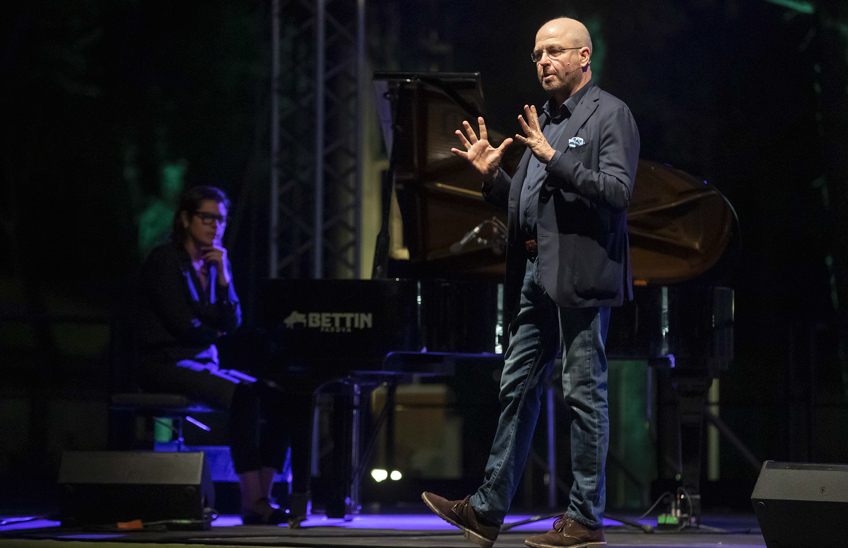 Immaginate un uomo che, superata la soglia dei cinquant’anni, diventa padre quando ormai, in famiglia e sul lavoro, si era adagiato su una perfetta vita da figlio. E una lunga lettera, emozionante e ironica, destinata a un bambino che non c’è ancora mentre si fanno i conti con un padre che non c’è più. Massimo Gramellini, giornalista della carta stampata ma anche oramai volto noto della televisione, partendo dal suo ultimo libro, Prima che tu venga al mondo(Solferino), ripercorre insieme al pubblico il racconto dell’attesa di un figlio dal punto di vista dei futuri padri, nove mesi che trasformano ogni uomo in adulto grazie all’esperienza della genitorialità. Non nuovo al gesto autobiografico – si pensi a Fai bei sogni incentrato sul dolore e il senso di abbandono provato dopo la morte della madre – Gramellini racconta in questo caso una storia d’amore e di rinascita universale, che ci ricorda come attraverso gli altri possiamo ritrovare in noi stessi infinite risorse e comprendere ciò che conta davvero. Una narrazione che si dipana lungo il filo musicale tracciato da un’artista meno nota al grande pubblico, che però ha certamente ascoltato le sue musiche – è autrice, tra l’altro, di alcune sigle televisive Rai (una per tutte quella di Correva l’anno) e di colonne sonore di documentari e inchieste -, ma affermata sulla scena internazionale. Perché Virginia Guastella, pianista e compositrice palermitana di nascita, musicalmente cresciuta a Bologna, ha scritto musiche eseguite nei teatri di mezza Europa e fin negli Stati Uniti, ponendo al centro della propria poetica il confronto e il dialogo tra culture e stili diversi.