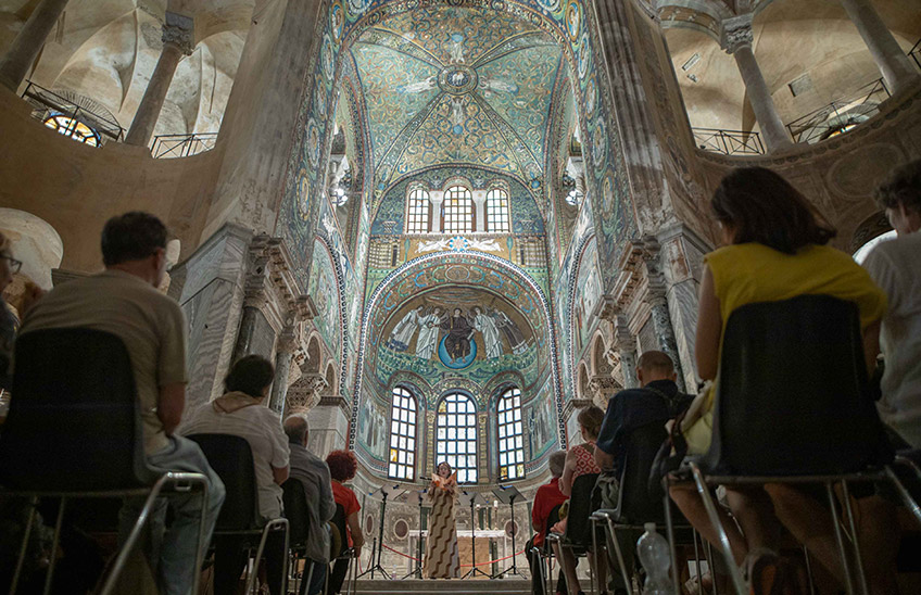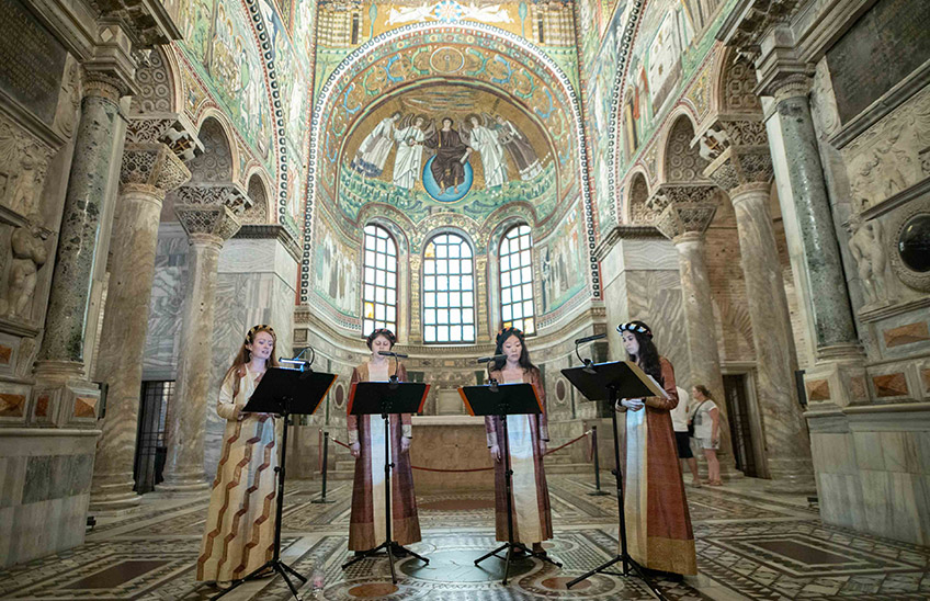 Canti ecclesiastici della grande tradizione bizantina, soprattutto di Costantinopoli del periodo imperiale (dei secoli IX-XV) su testi in slavo ecclesiastico e greco. Un canto che si basa sui cosiddetti otto toni ecclesiastici. La musica di tradizione greca è caratterizzata dall’uso dell’ison: nota a pedale che accompagna la melodia. Un artificio che ha un significato spirituale: l’ison rappresenta la natura increata cioè Dio, sempre fedele a se stesso, mentre la melodia rappresenta l’attività dell’uomo che, sempre mutevole, si appoggia a Dio. Per questo la musica bizantina è una forma elevata di preghiera universale.