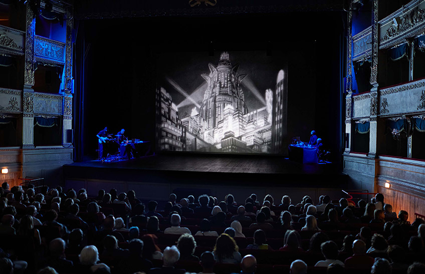 Quel suono che allora, nel 1927, era impossibile da realizzare, si potrà ascoltare ora, quasi un secolo dopo, ovvero negli anni in cui il film stesso è ambientato. Edison Studio, collettivo espertissimo di compositori-esecutori, ha creato una nuova colonna sonora per il più visionario dei film muti: Metropolis, restituito, e restaurato, nella versione più completa mai ritrovata. Nella composizione interagiscono tra loro suoni vocalici e strumentali, meccanici ed elettronici e suoni d’ambiente: suoni creati ad hoc, ma presi in prestito dalla natura e dalla storia della musica, portando sulla scena strumenti acustici e tradizionali, objets trouvése strumenti informatici, orchestrati e trasformati dal vivo grazie alle nuove tecnologie e alla diffusione immersiva del suono. Ricercando e sperimentando, ancora una volta, sonorità possibili e “impossibili”.
