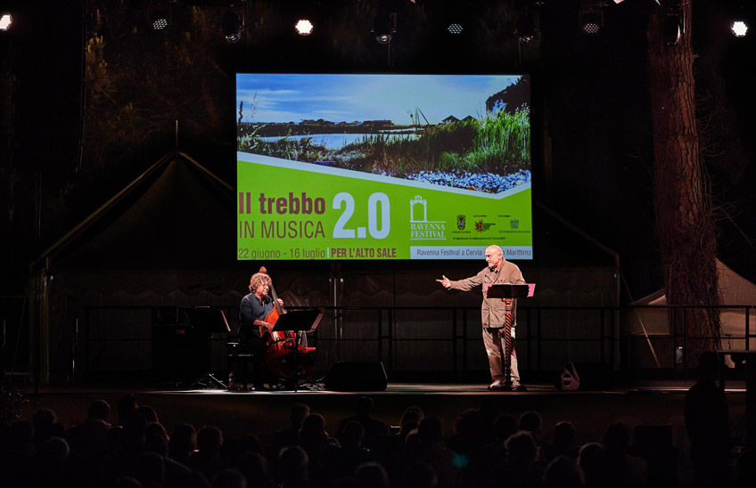 Un Omaggio a Tonino Guerra inaugura Per l’alto sale, vero e proprio festival nel festival, tutto cervese, che unisce le parole dei grandi protagonisti del dibattito culturale del nostro paese alla musica di artisti di calibro internazionale. Prendendo il nome dalla voce dialettale treb, con cui si indicano le riunioni serali dei contadini nelle stalle in cui la voce, sotto forma di narrazione o giochi verbali, faceva da protagonista, il Trebbo Poetico è stato ideato per la prima volta in un campeggio di Milano Marittima da Walter Della Monica e Antonio Comello e, tra il 1956 e il 1960, ha portato giganti della letteratura italiana, come Ungaretti o Montale, a incontrare prima il pubblico di Cervia poi quello di numerose altre città italiane. Dunque, per tornare a quella tradizione, non poteva esserci interprete più significativo di Ivano Marescotti: noto anche per il sodalizio con Raffaello Baldini, di cui ha interpretato l’opera poetica e teatrale, l’attore ha tradotto nel proprio dialetto, quello di Villanova di Bagnacavallo, anche numerose poesie di Tonino Guerra, con l’approvazione dell’autore stesso – del resto non può sfuggire la consuetudine di entrambi con il mondo poetico ma anche con quello del cinema. I testi dalle raccolte Il miele, Il viaggio e I bu, risuonano dalla voce di Marescotti insieme al contrabbasso e al live electronics di Paolo Damiani, in un inedito sound di parola arcaica e modernità musicale.