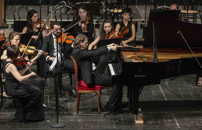 Bach e Mozart. Personalità e biografie lontanissime, universi conchiusi in se stessi, in quanto capaci in ogni pagina di toccare vertici artistici assoluti e inarrivabili. Eppure legati dal filo sottile del tempo: le rigorose trascrizioni per tastiera di Bach – il BWV 1052 derivante da un concerto per violino andato perduto come quello per oboe d’amore da cui prende origine il BWV 1055 – sono destinate ai figli, Christian ed Emanuel, a loro volta protagonisti di quella sensibilità che Mozart trasfigurerà nella profondità drammatica e nella disarmante tinta fatale dei suoi concerti viennesi, tra cui il K 491. Non c’è interprete che nella grandezza di queste opere non senta la responsabilità di avvicinarle: una sfida con cui il pianista francese David Fray si misura con acume e determinazione fin dagli esordi della carriera.