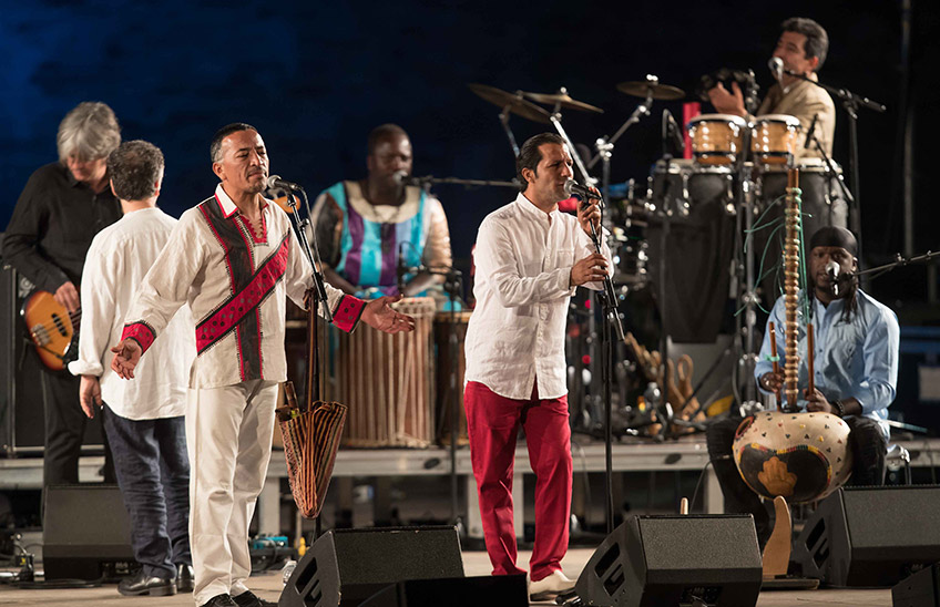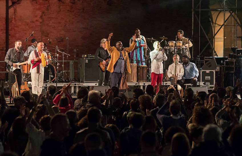 L’isola di Legno è l’isola che la visionarietà di tanti artisti ha fatto emergere dal mare del mondo, nell’ombelico di Roma. Qui, all’Esquilino, l’Orchestra di Piazza Vittorio è nata nel 2002, magma multietnico di musicisti, stretti in un’intesa di ritmo e di note. E sono questi quindici anni di attraversamenti reciproci e di complicità a dare forma ai paesaggi sonori dell’Isola, fotografia cangiante di un percorso del gruppo intorno alla canzone. Mario Tronco è il capitano della band, intento a temperarne gli umori variabili in miscele esotiche e irresistibili, fatte di oud e flicorni, flauti andini e chitarre. Non resta che farsi ammaliare da una partitura che canta di persone che si incontrano e si raccontano. Memorie aperte in un rollio continuo, tra un orizzonte e l’altro.