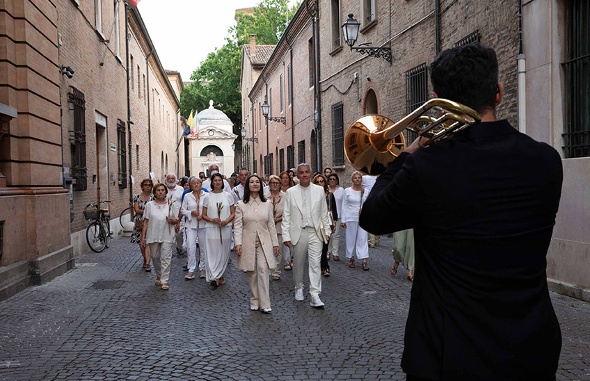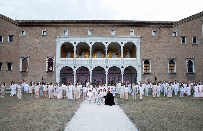 Anche il PARADISO avrà il suo incipit alla Tomba di Dante e da lì si snoderà lungo le vie del centro, per approdare sul prato davanti alla Loggetta Lombardesca, un’architettura rinascimentale di armoniosa bellezza.
