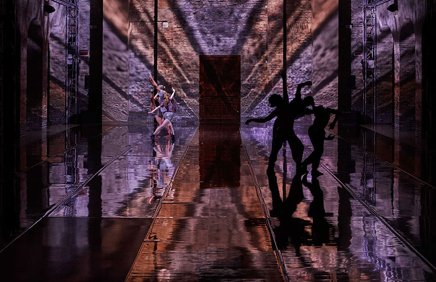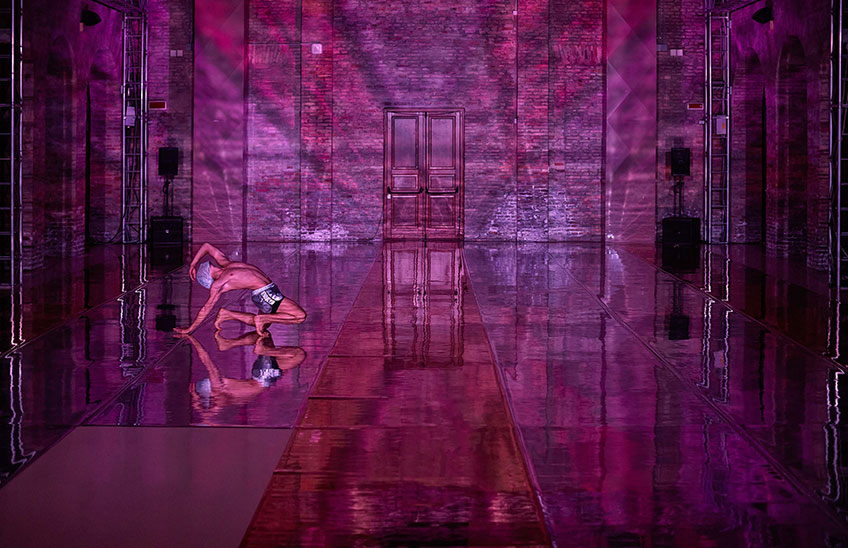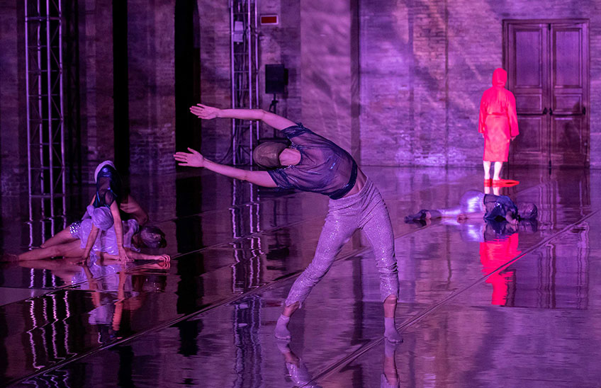 Paradiso è una collaborazione tra gruppo nanou e Alfredo Pirri, che, qui a Ravenna, ne realizzano un primo bozzetto. È l’inizio di un viaggio dedicato alla terza cantica dantesca – vista come uno spazio altrove, abitato da figure leggere ed evanescenti; un campo lungo cinematografico in cui immergersi grazie alla musica di Bruno Dorella – per una coreografia in sinergia soprattutto con l’arte visiva, e che si compirà nel 2022. L’azione coreografica si immerge dentro lo spazio fino a divenirne parte essenziale, assumendone contorni e connotati. Al contempo, lo spazio è luogo, disegno, architettura indipendente dai corpi e dagli oggetti rapportandosi a essi come una materia elastica che, se urtata, ne assume l’immagine per tornare immediatamente a riprendere la propria fisionomia di materia originaria e distante.