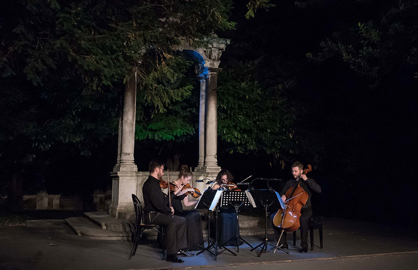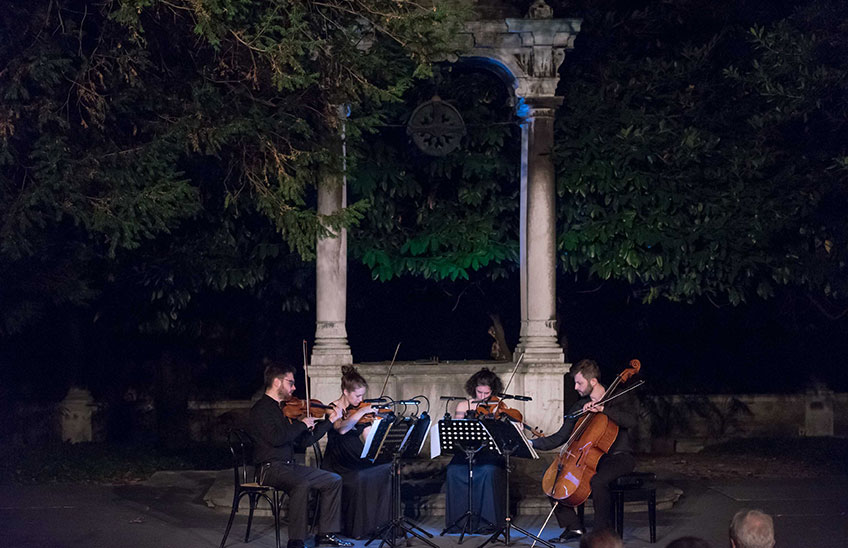 È un trittico di opere emblematiche quello proposto dal Quartetto che rende omaggio al filosofo tedesco Theodor Wiesengrund Adorno, strenuo difensore del classicismo viennese e di un’idea di progresso che culmina nella Seconda Scuola di Vienna. Non è un caso se si parte da Beethoven, con uno dei quartetti dell’op. 59, composta nel 1805-1806 per l’ambasciatore russo Rasumowsky, e che risente dell’esperienza sinfonica dell’Eroica, del Fidelio e del Terzo Concerto per pianoforte. Il punto d’arrivo è il dissolvimento tonale e tematico dei Cinque pezzi in cui Webern, nel 1909, innesta il gioco timbrico e strumentale. Passando però dall’unico Quartetto, scritto tra 1892 e 1893, da Debussy che, suggestionato dal Quatuor di César Franck, mitiga l’insofferenza per la tradizione sfoderando la propria maestria nella scrittura accademica.