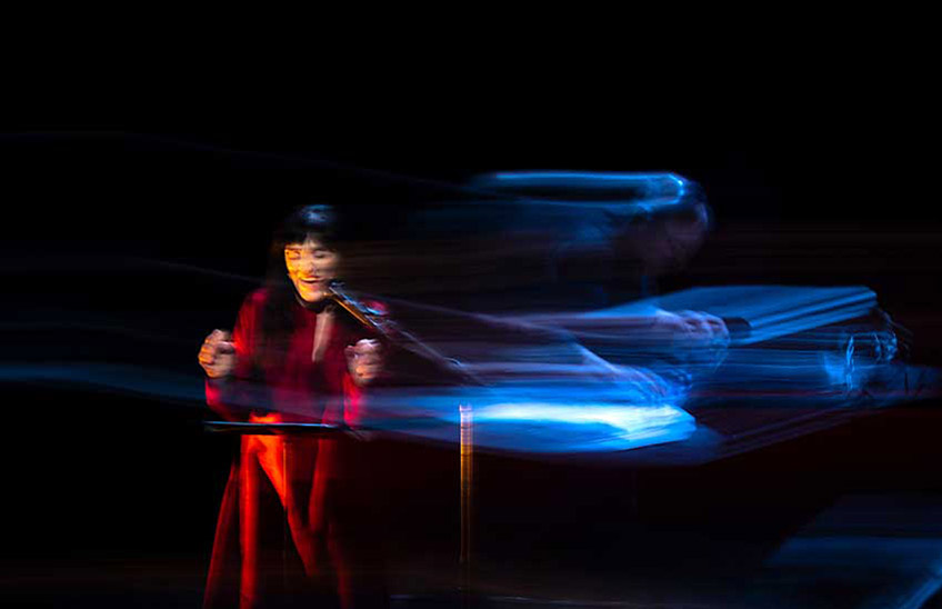 Un esperimento di sintesi tra voce e suono, sospeso tra scrittura e improvvisazione, ci riporta alle radici sorelle di queste arti. La voce di Amelia Rosselli, autentica e trasparente, lascia intravedere un’anima e diventa musica: echi di lingue diverse, impennate, monocordi e ipnotiche, furie e dolcezze. Ispira una drammaturgia che miscela vita e arte: interviste, biografie, racconti, foto, una poesia potente, ironica e straziante, una malattia insidiosa, una famiglia originale e complessa. Il suo mistero non si dissolve, ma cresce, lasciando una scia di domande si muove la danza tra Luigi ed Elena. Suono e voce nascono l’uno dall’altra, disegnando un racconto sonoro sempre diverso: si illumina a tratti il mistero di una donna poeta che si sottrae e si dona al mondo, risvegliando in noi la nostalgia di un luogo da cui tutti veniamo.