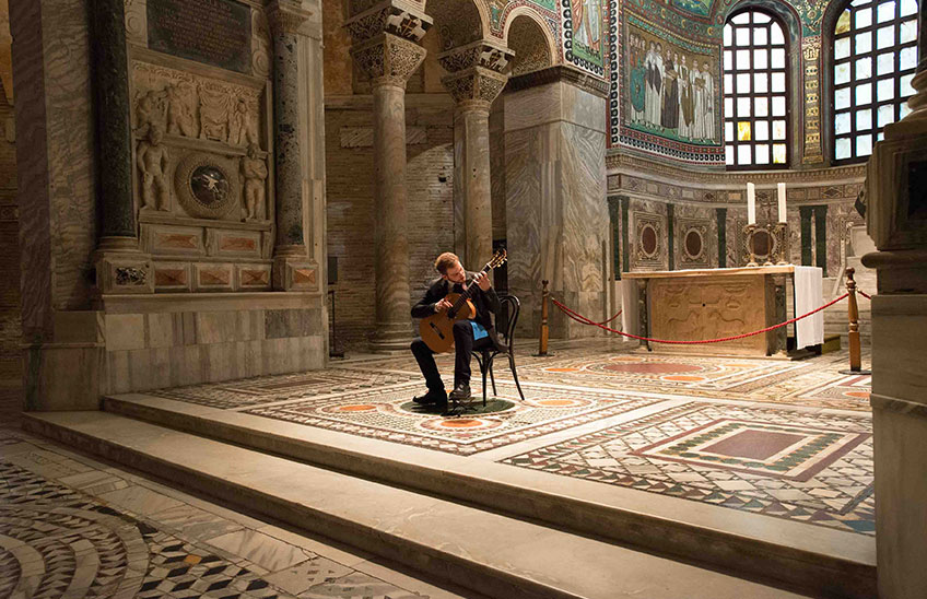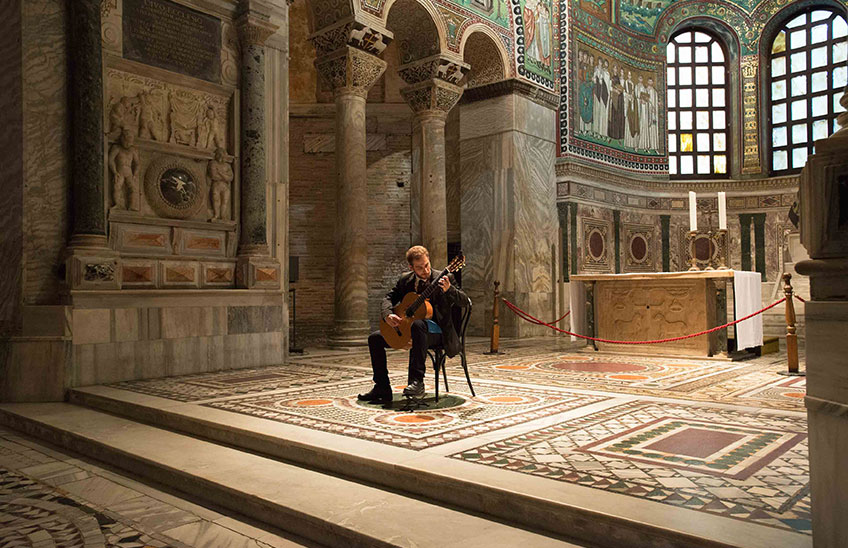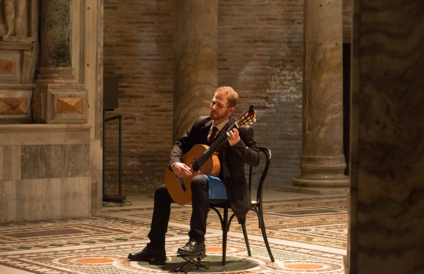 Dalla magia della letteratura per liuto fino alle moderne espressioni della chitarra, il concerto proposto dal chitarrista Gabriele Balzerano è un percorso di fede e spiritualità raccontato in musica da grandi autori per chitarra: il viaggio comincia dalla Cattedrale di San Jose in Montevideo – che ha ispirato il capolavoro di Barrios – raggiunge il monastero di Montserrat dove Fernando Sor si formò musicalmente e ne compose questa sua intima e struggente visione musicale, rivisita il canto gregoriano col Dies irae dello stesso Balzerano e infine incontra un mistico del XII secolo nella suite Koyunbaba di Carlo Domeniconi, ricca di suggestioni e rimandi.