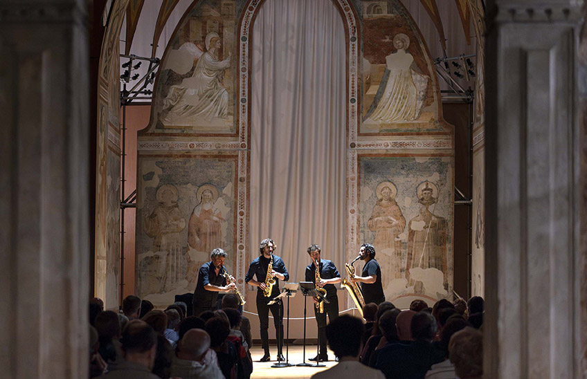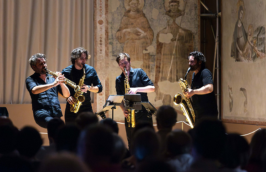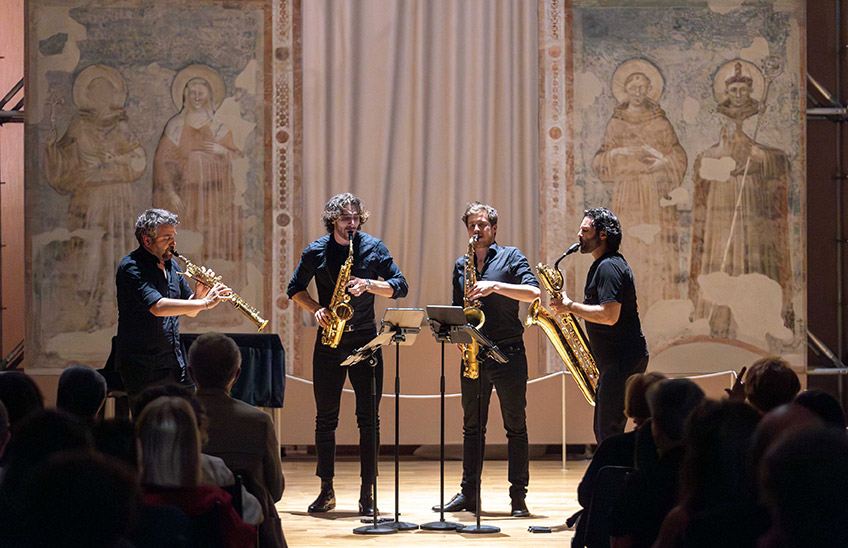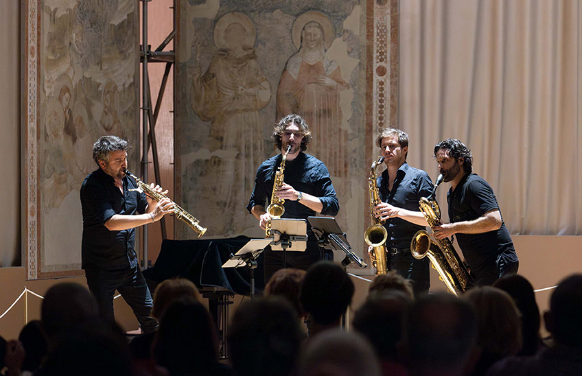 Quattro sassofoni, se messi nelle mani giuste, possono vantare l’impatto sonoro, la cura del dettaglio e la sinuosità di movimento di un’intera orchestra sinfonica. E fin dalla maniera “coreografica” con cui suonano in semicerchio, i membri del Signum Saxophone Quartet riescono a insufflare nuova vita in ogni repertorio che attraversi le loro ance. La padronanza delle dinamiche, la coesione d’insieme, l’abilità nella trascrizione e il disinvolto superamento di ogni ristrettezza timbrica permettono loro di creare suggestivi percorsi nelle geografie dell’immaginario musicale, attraverso l’attenta rielaborazione e il temerario accostamento di materiali eterogenei per epoca, contesto e provenienza. Fino a condurli, insieme a chi ascolta, verso esiti non di rado sorprendenti.