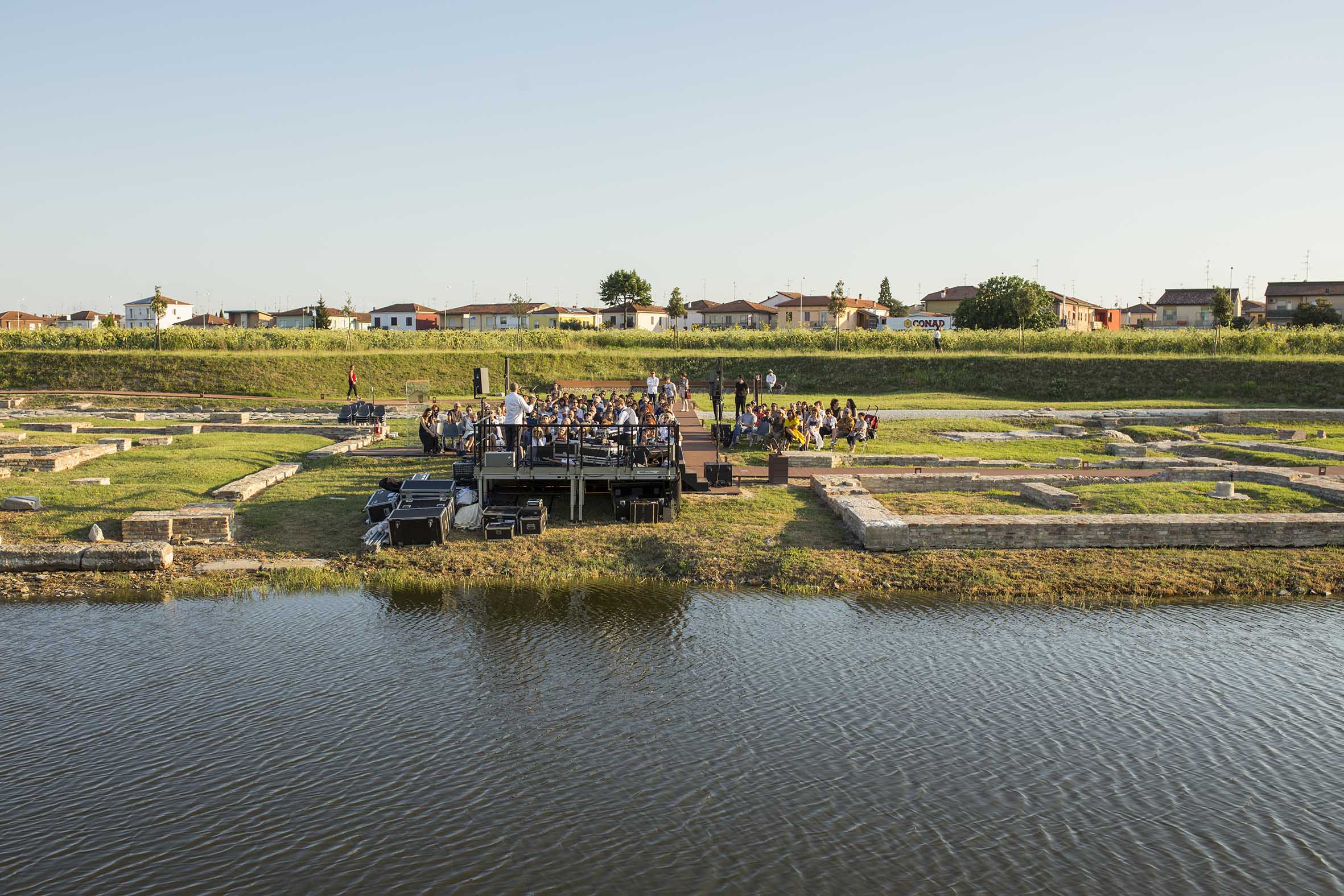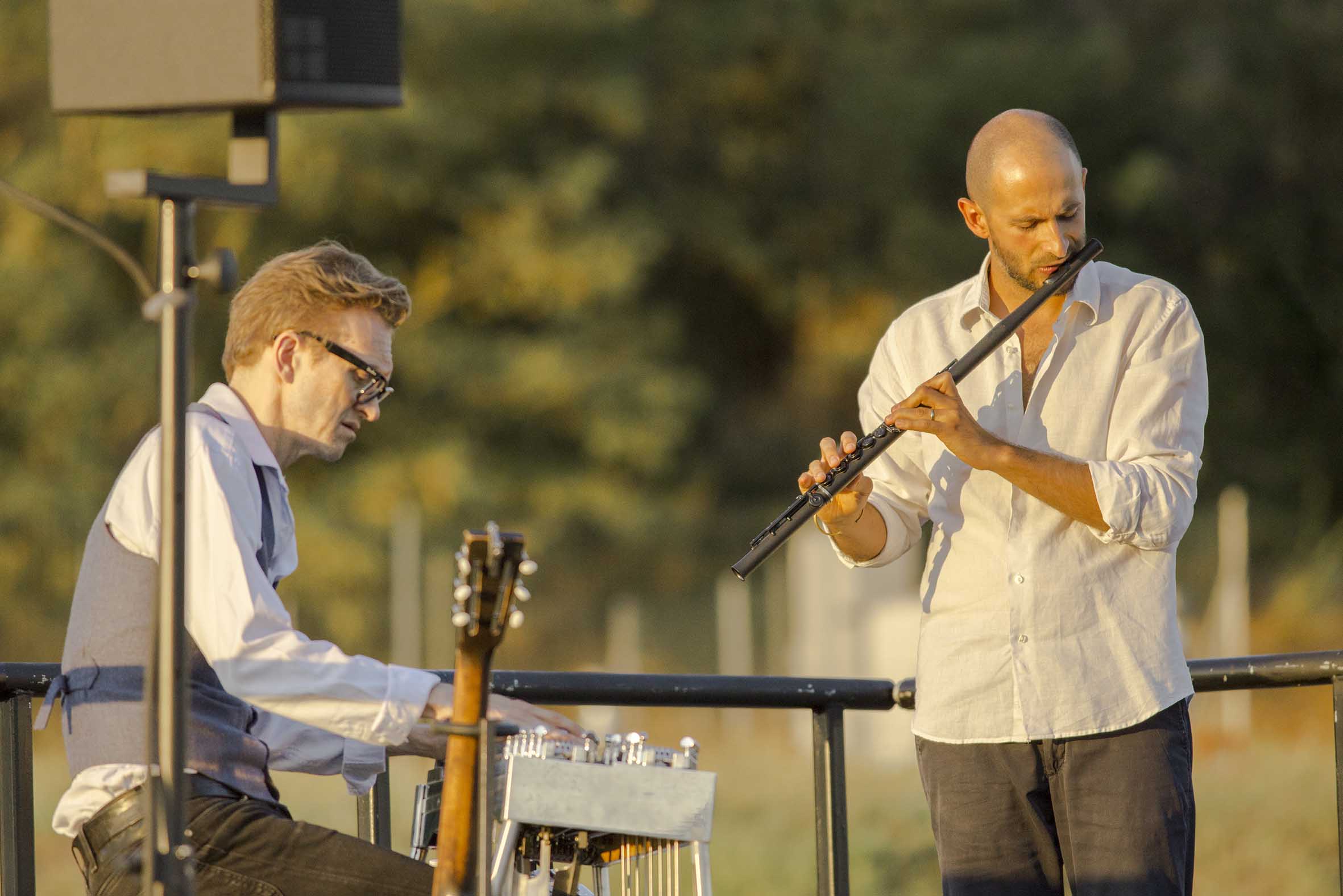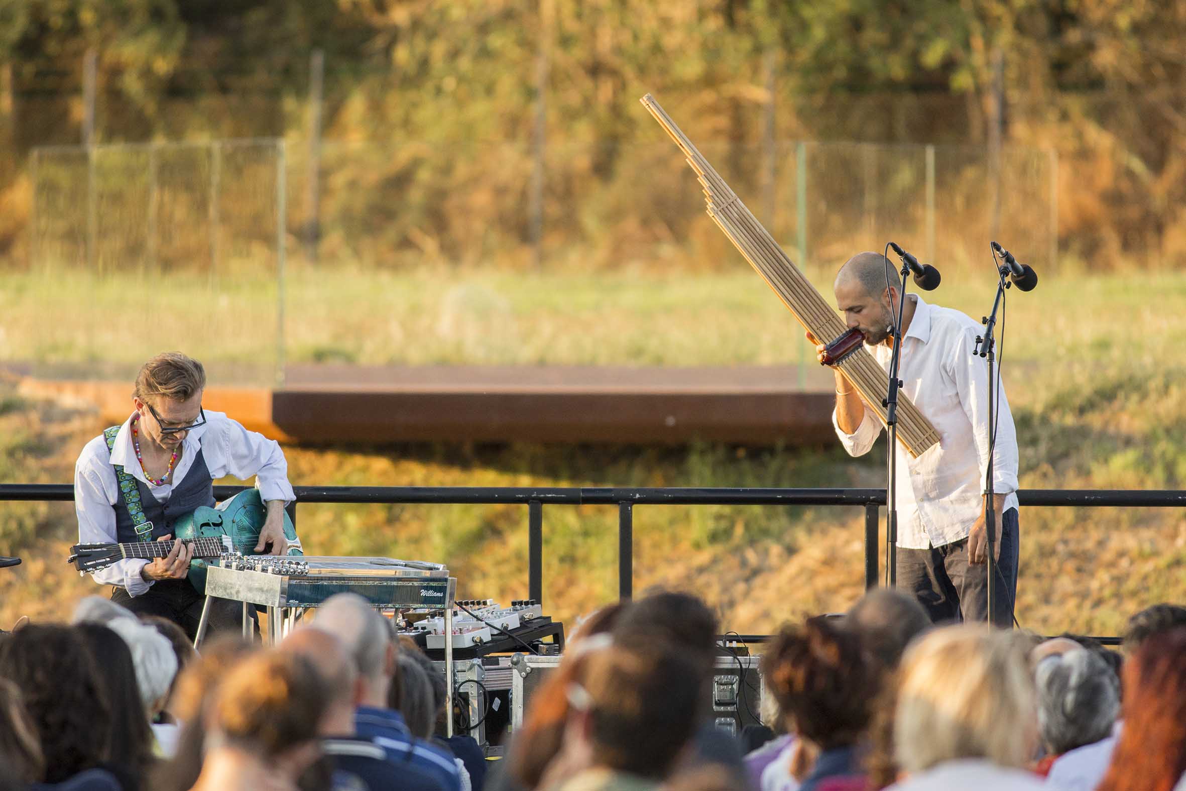 Spazi antichi e senza tempo, su cui vegliano gli spiriti di marinai di tutto il mondo, diventano il golfo mistico e la platea per il concerto di un duo inedito, che parte da punti cardinali diversi, ma indaga in modo analogo le sonorità di tutto il mondo. Gli strumenti a fiato del romagnolo Fabio Mina e quelli a corda del norvegese Geir Sundstøl, tutti tradizionali e allo stesso modo poco comuni, raccontano le atmosfere del tramonto, lavorando con l’arte dell’improvvisazione su tutte le sfumature dei colori musicali, anche grazie all’elettronica dal vivo. Jazz e folk di respiro cinematografico colorano così le pietre della strada basolata dell’Antico Porto di Classe come gli ultimi raggi caldi del sole e addirittura ne seguono il mutare fino al crepuscolo.