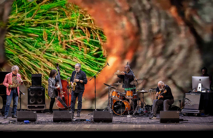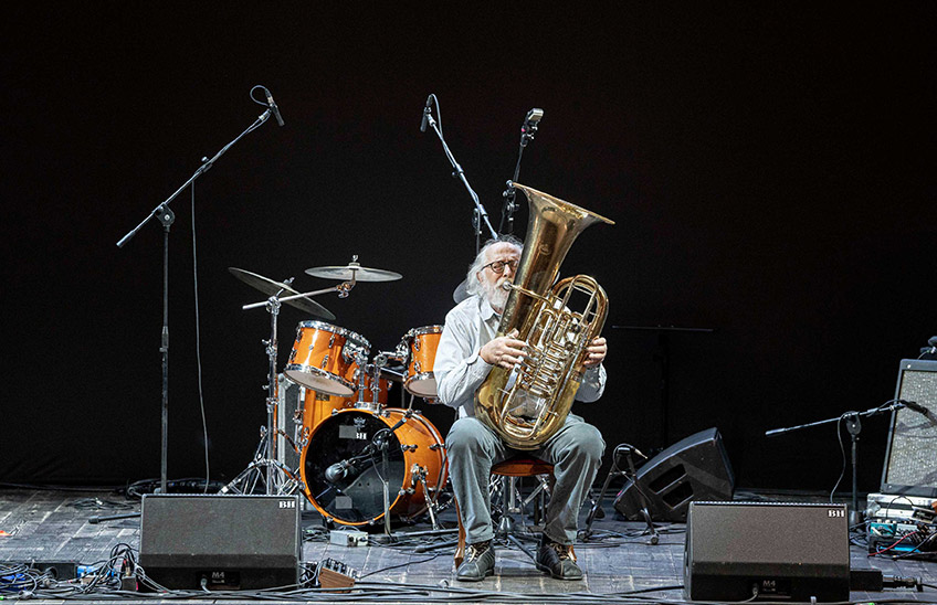 Silvia Bolognesi contrabbasso, Martin Mayes corno e Gianluca Lo Presti live visual