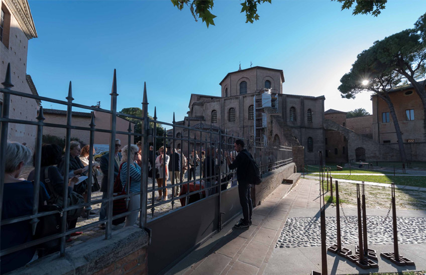 La percezione di perfezione che rapisce chi entra nella Basilica di San Vitale, immerso nella bellezza che scaturisce da quell’equilibrato intreccio di fede e matematica, spiritualità e geometria, è lo stesso che avvolge l’ascoltatore che si introduce nel perfetto equilibrio armonico della musica di Bach, ineffabile sintesi, anch’essa, di arte e geometria, rapporti numerici e spiritualità. Cosa ci può essere di più affascinante e coinvolgente dell’ascoltare uno dei massimi capolavori di Johan Sebastian Bach, le Variazioni Goldberg nella versione per trio d’archi di Bruno Giuranna, eseguito dal Trio Quodlibet sotto l’oro dei mosaici di San Vitale?